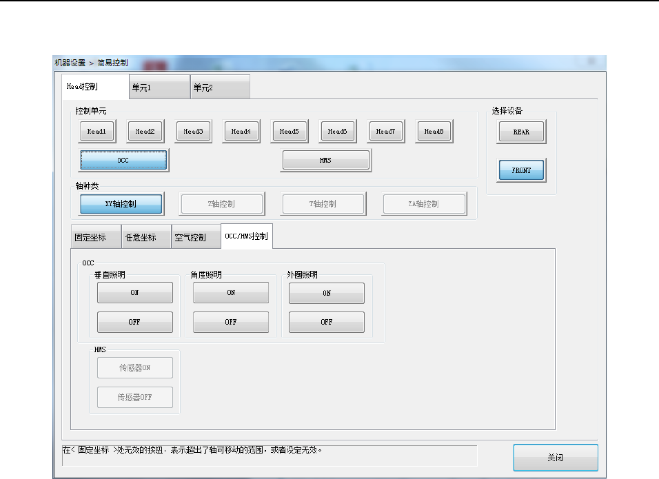 按下 [垂直照明] [角度照明] [外圈照明]的 [ON] [OFF] 按钮,即对OCC进行照明控制。仅外圈