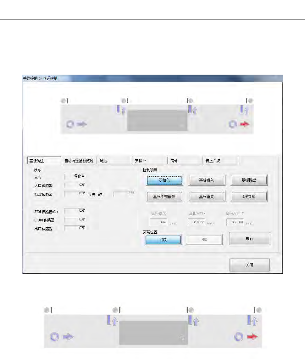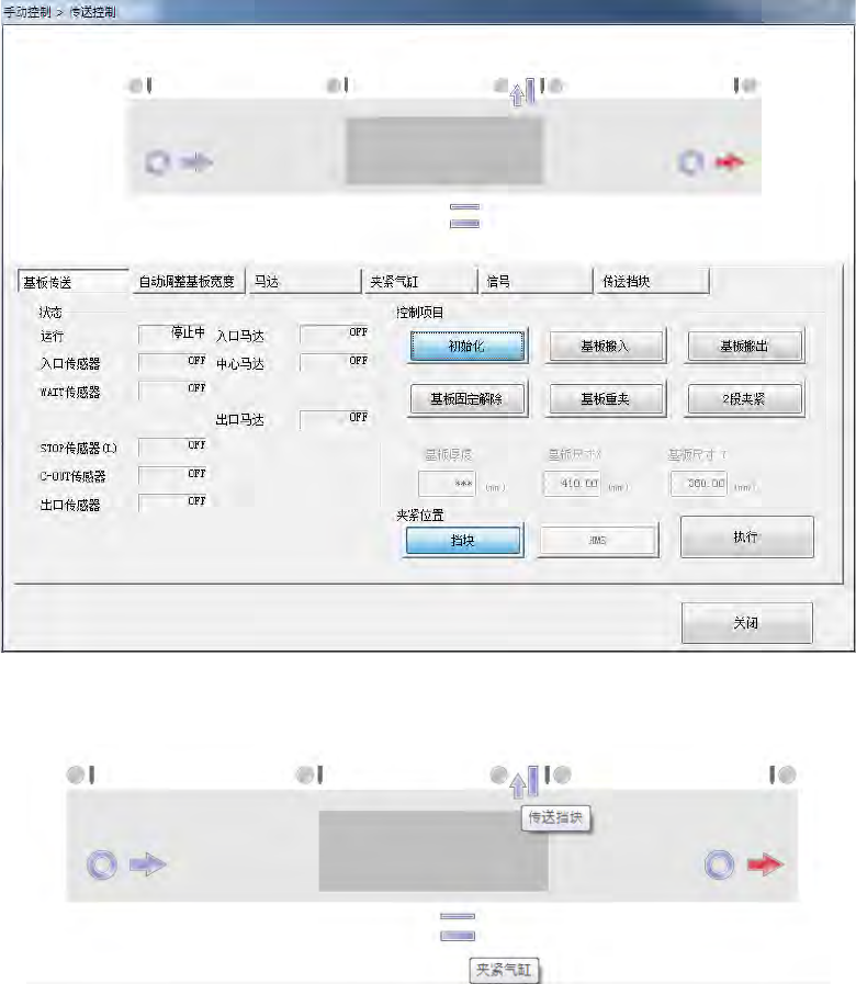 在画面上部显示各传送传感器·传送马达的状态。