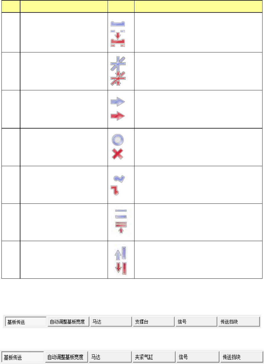 第 2 部 功能详解篇 第 8 章 手动控制 8- 16 ○ 安装了 弯脚固 定单元时 各 传送传感器 、传送 马达的状态, 显示 在 画面上部。 将光标放置在传 感器显示图上,会 显示对工具的说明 。 传送控制 画面上的 各传感器的显 示 图,请参 见 如下列表。