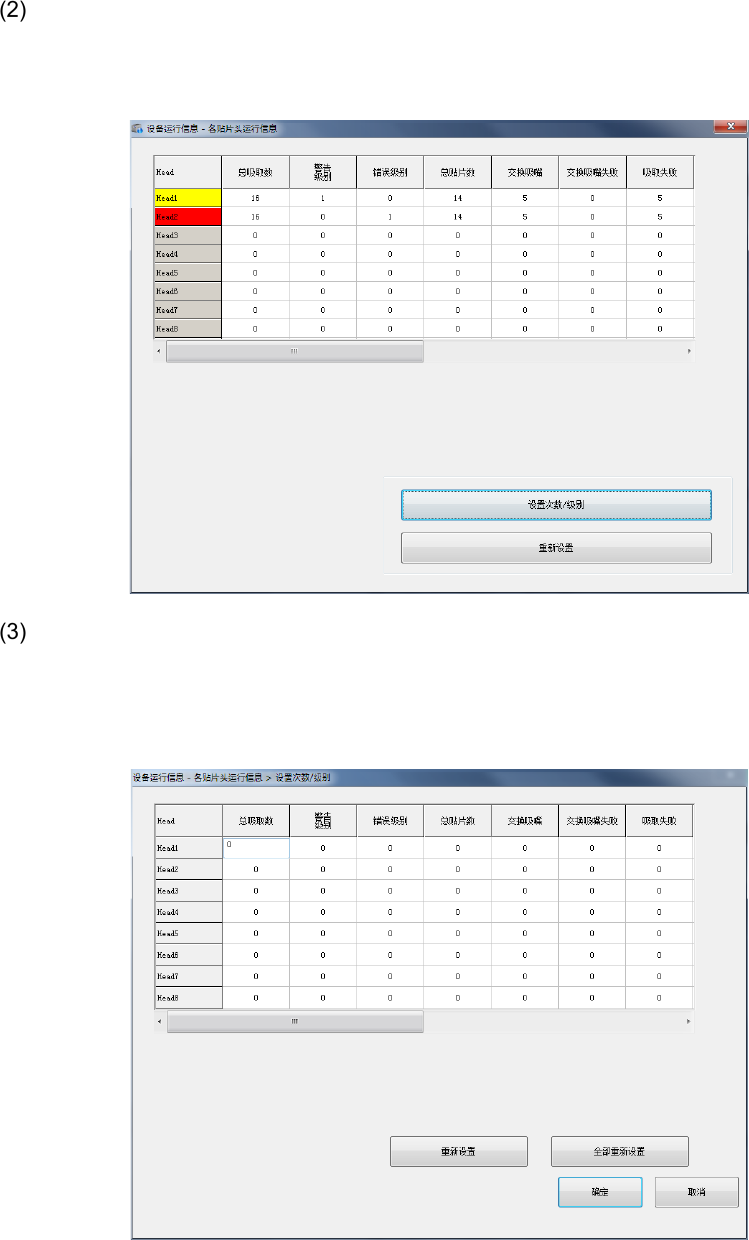 按下[设置次数/级别]按钮,或从菜单中选择[设定]-[设定-各贴片头运行信息],