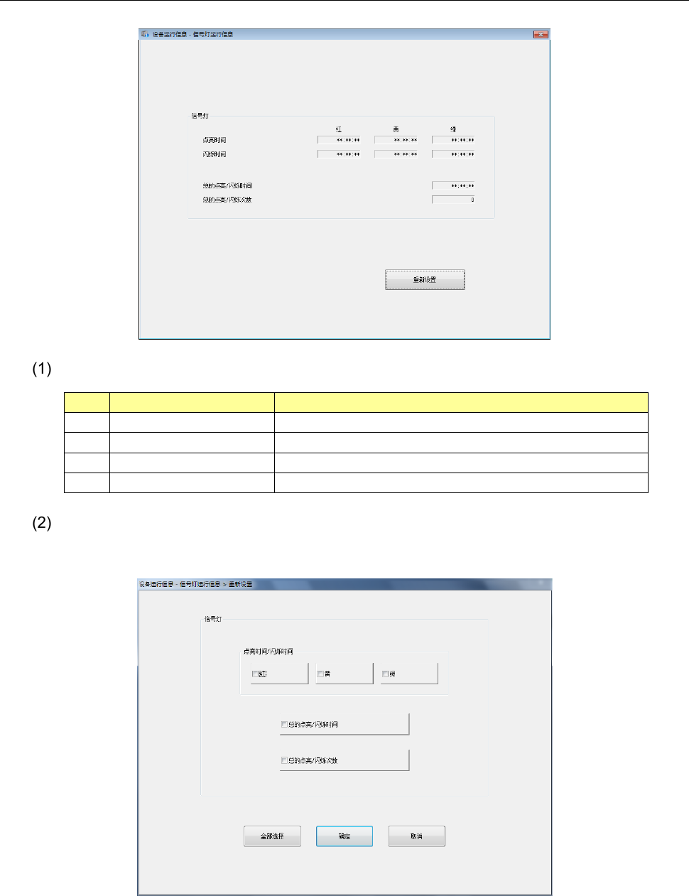 3 总的点亮/闪烁时间 信号灯的亮灯、闪烁时间、合计时间的累计。