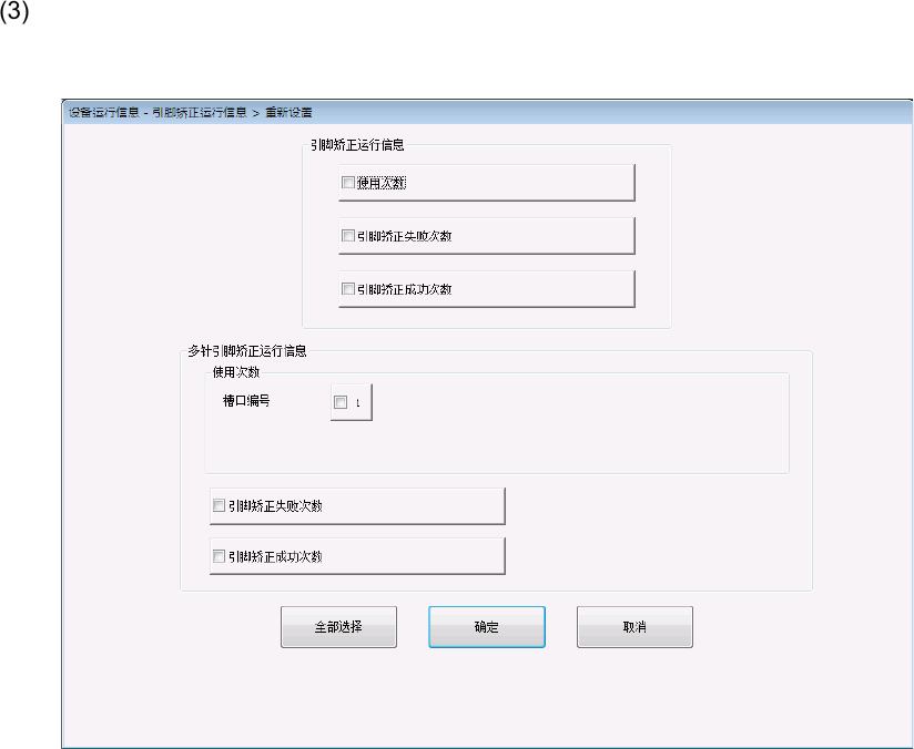选择主菜单的[识别・检査]-[引脚矫正运行信息],则显示管脚(引脚)矫正运行信息画面。