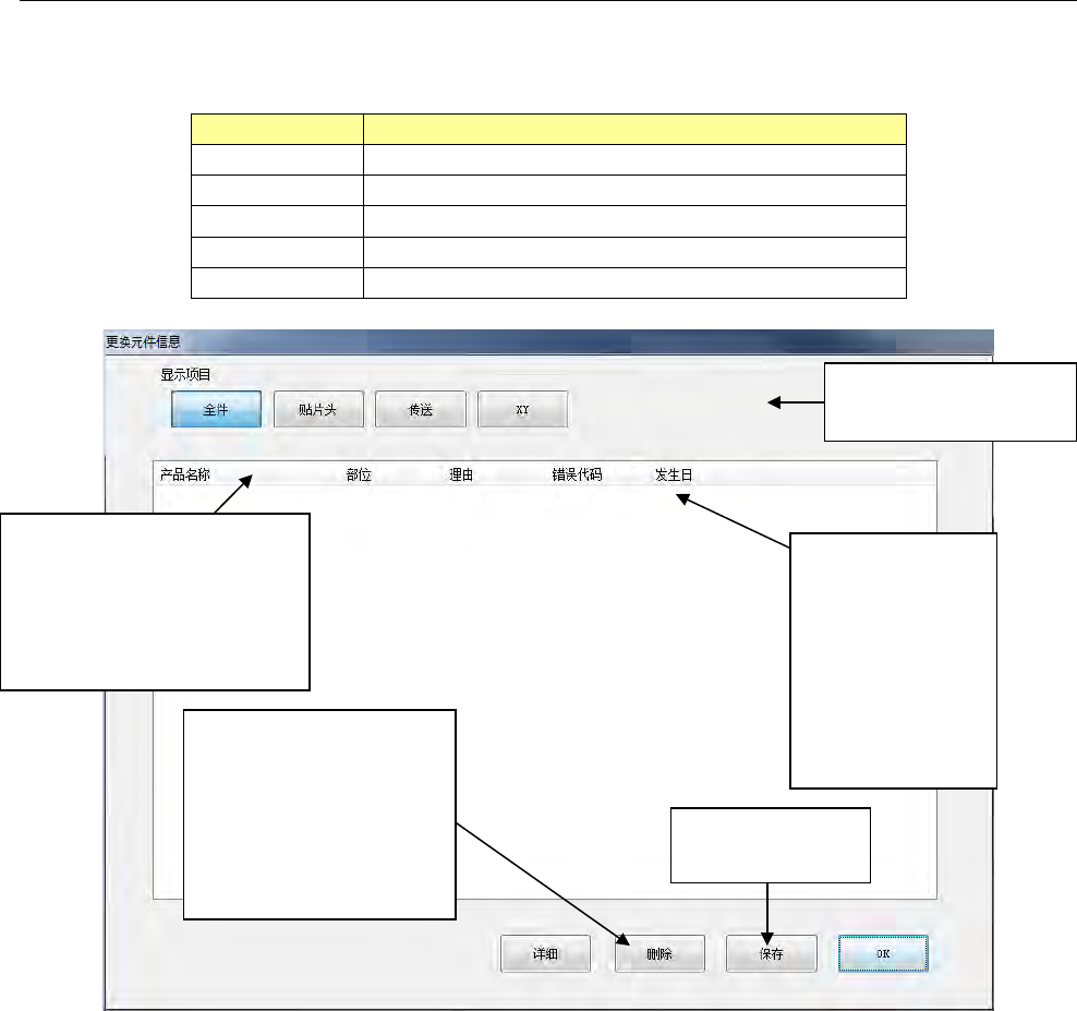 按下各单元按钮,会显示该单元的部件更换信息的详细列表,