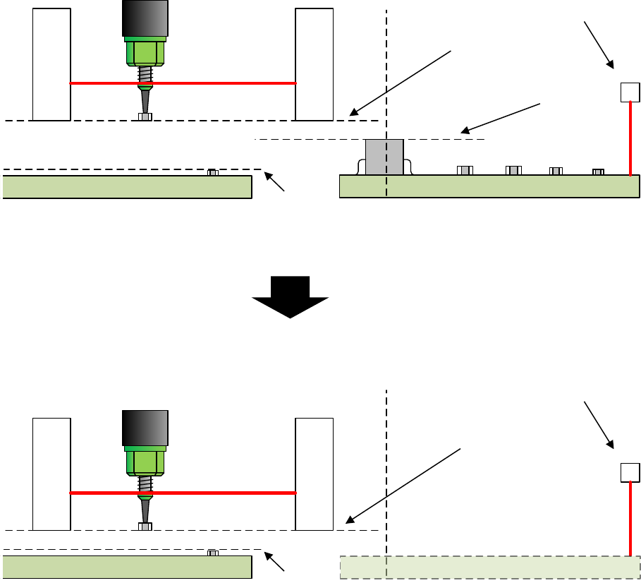 在有搬出待机基板 (OUT 传感器 ON)的状态时,ZA 高度将配合全部贴片点中的最高高度进行动