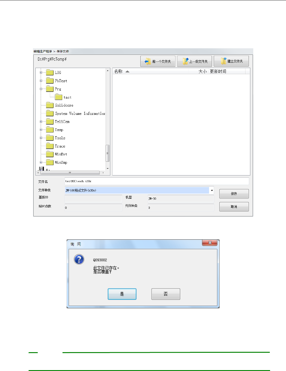 若指定已有的生产程序名,则会显示确认是否覆盖保存的信息。