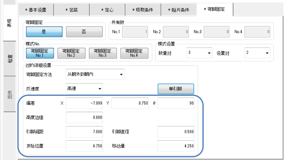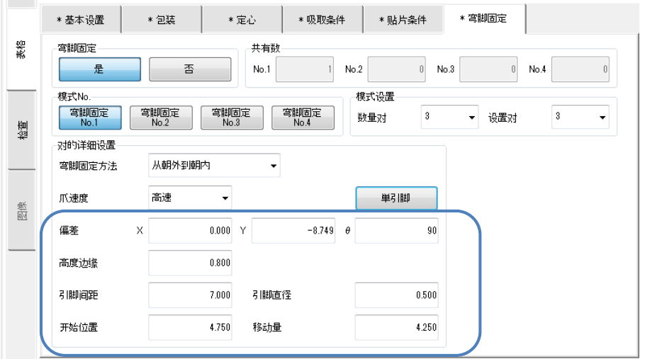 输出的值被自动输入到偏差(X,Y,θ)、引脚间距、引脚直径、开始位置、移动量栏中。