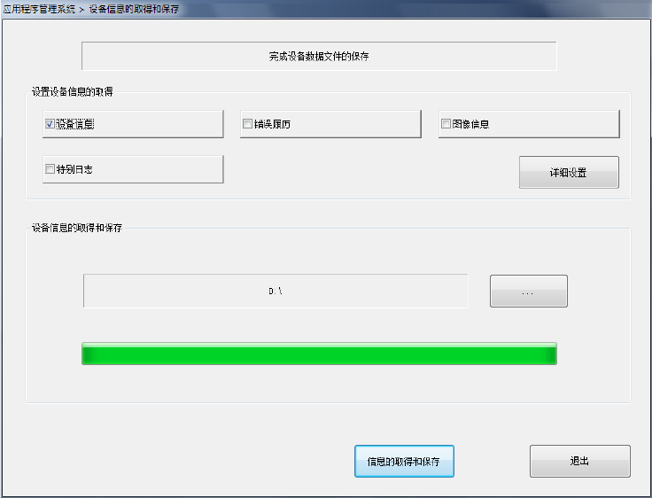 ③ 利用[信息的取得和保存]按钮取得设备信息,并将取得的文件进行压缩后保存。