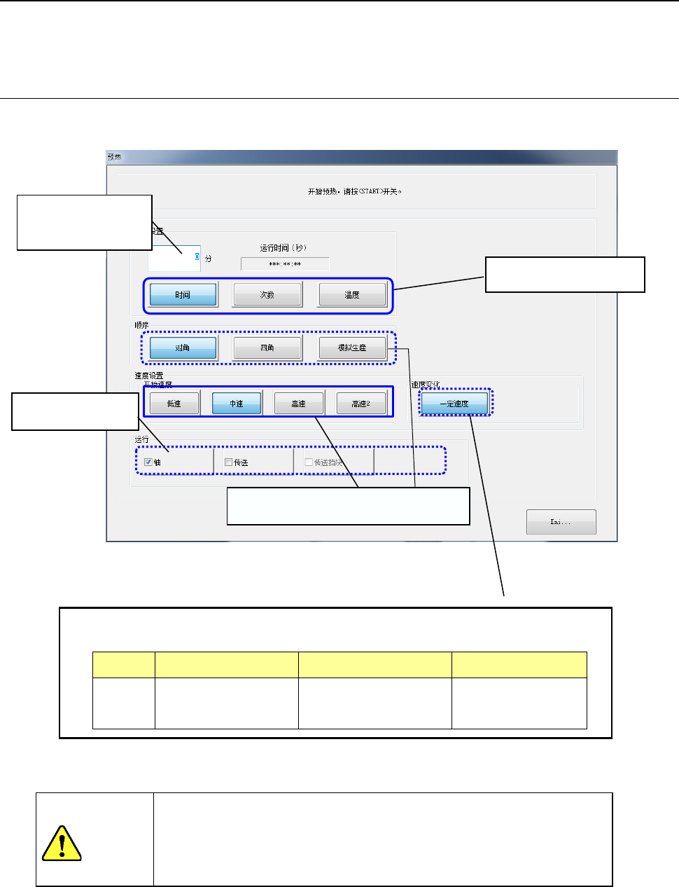 * 下列速度设置及顺序设置功能,只限修理工程师以上的用户级别才可操作。