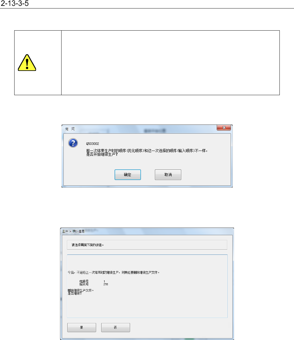 (2) 在可继续生产的状态下,选择不继续生产时,会显示提示,要求确认是否删除继续生产文件。