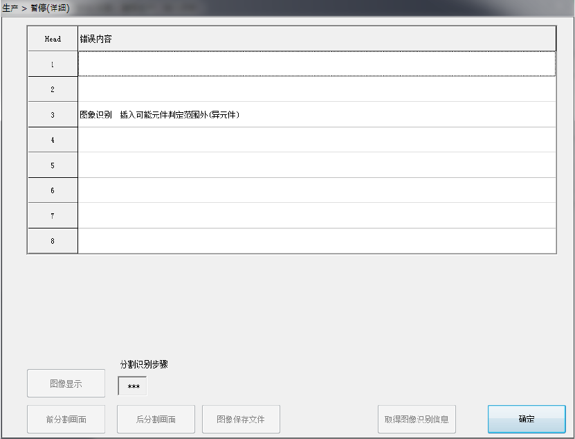 同时在分割识别时,按下[图像显示]按钮,则在[分割识别步骤]中显示出现在是第几分割的图像。