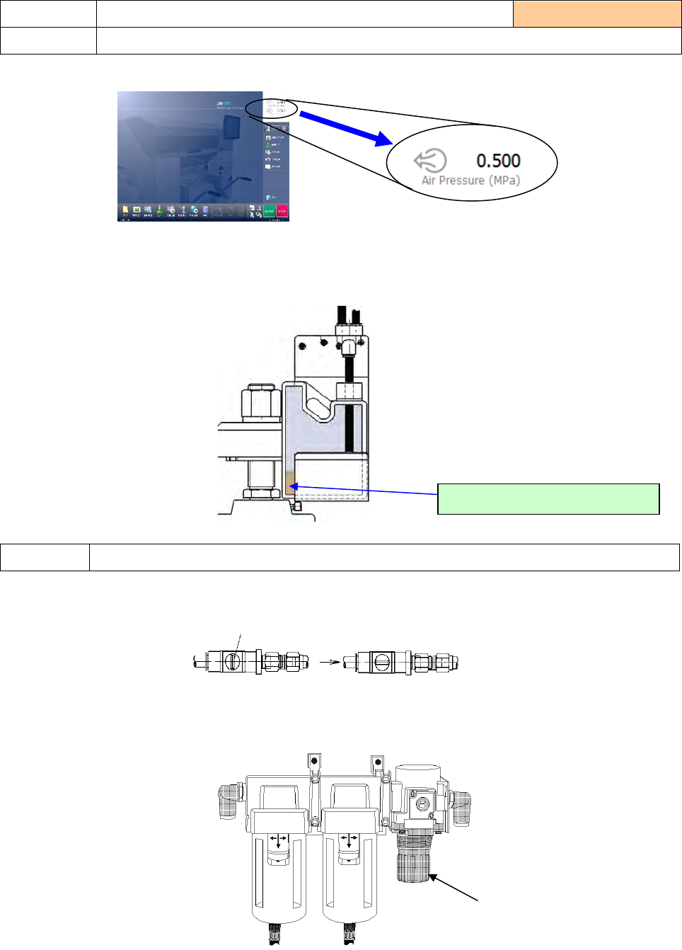 1) 触摸画面右上部,确认使用气压为 0.500±0.05MPa。