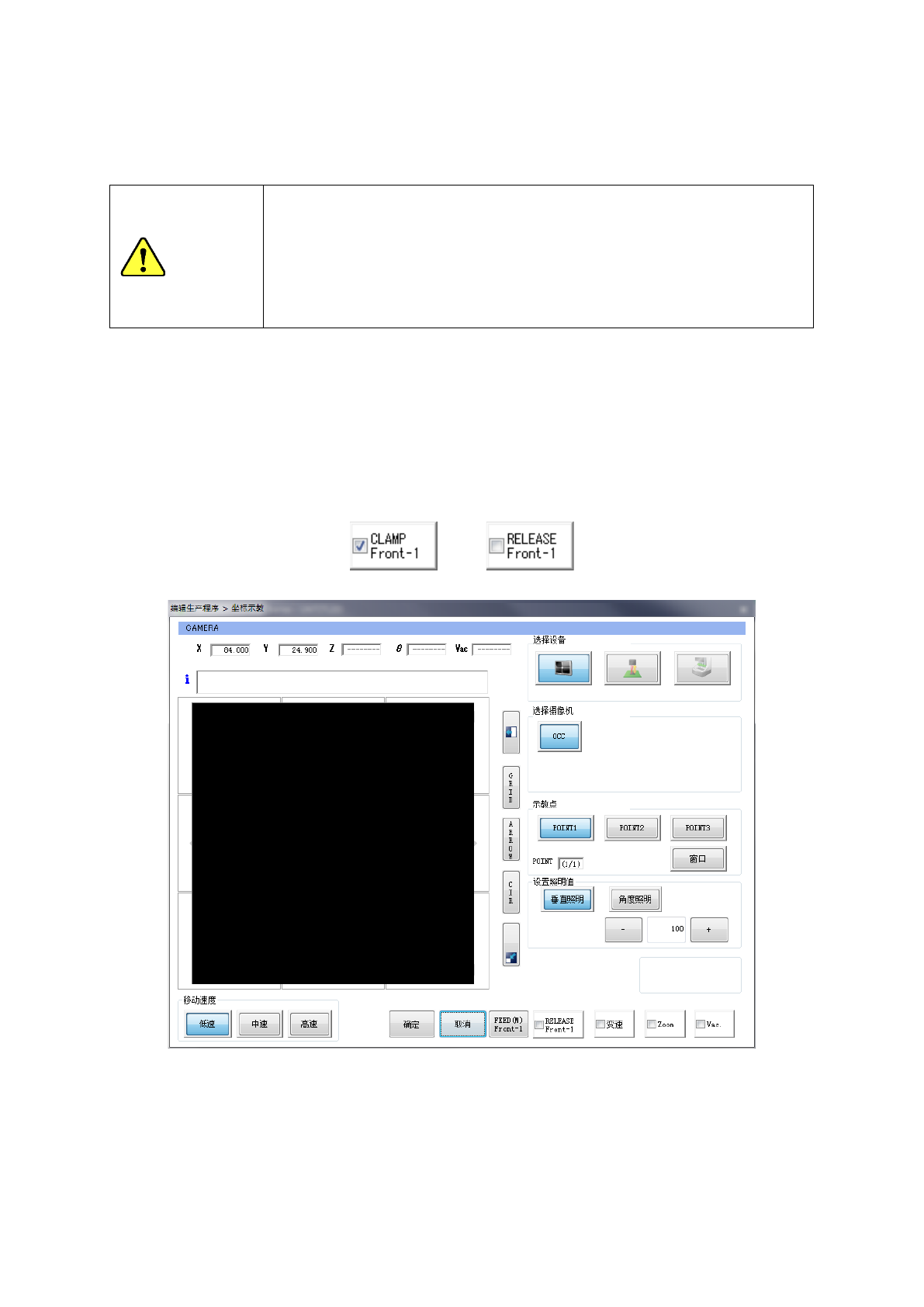 在径向供料器或轴向供料器的吸取位置示教后 ,出 现[CLAMP]按钮或者[RELEASE]按钮。径向供料器