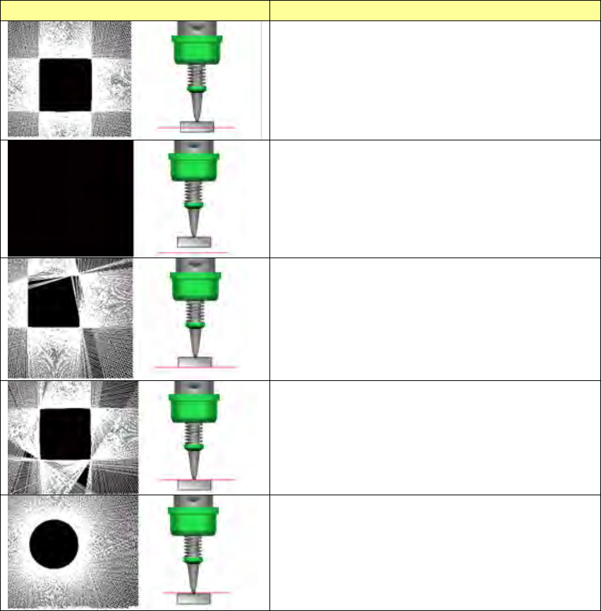 第 2 部 功能详解篇 第 8 章 手动控制 8- 13 变幻线及激光高度 说 明 激光高度适当。 取得的元件形状正确。 取得形状后, 激光 传 感器返回 SWEEP 识 别结果。 激光面上没有元件,因一个边 缘数据也得不到 , 无法描绘变幻线 ,画面呈黑色 。 激光 传 感器 SWEEP 失 败 ,返回信息 为 无元件 错 误 。 激光高度在元件下面附近 时 ,不能全面遮盖 激光 面,有些 边缘 数据没有取得, 所以 变 幻 线 形状…