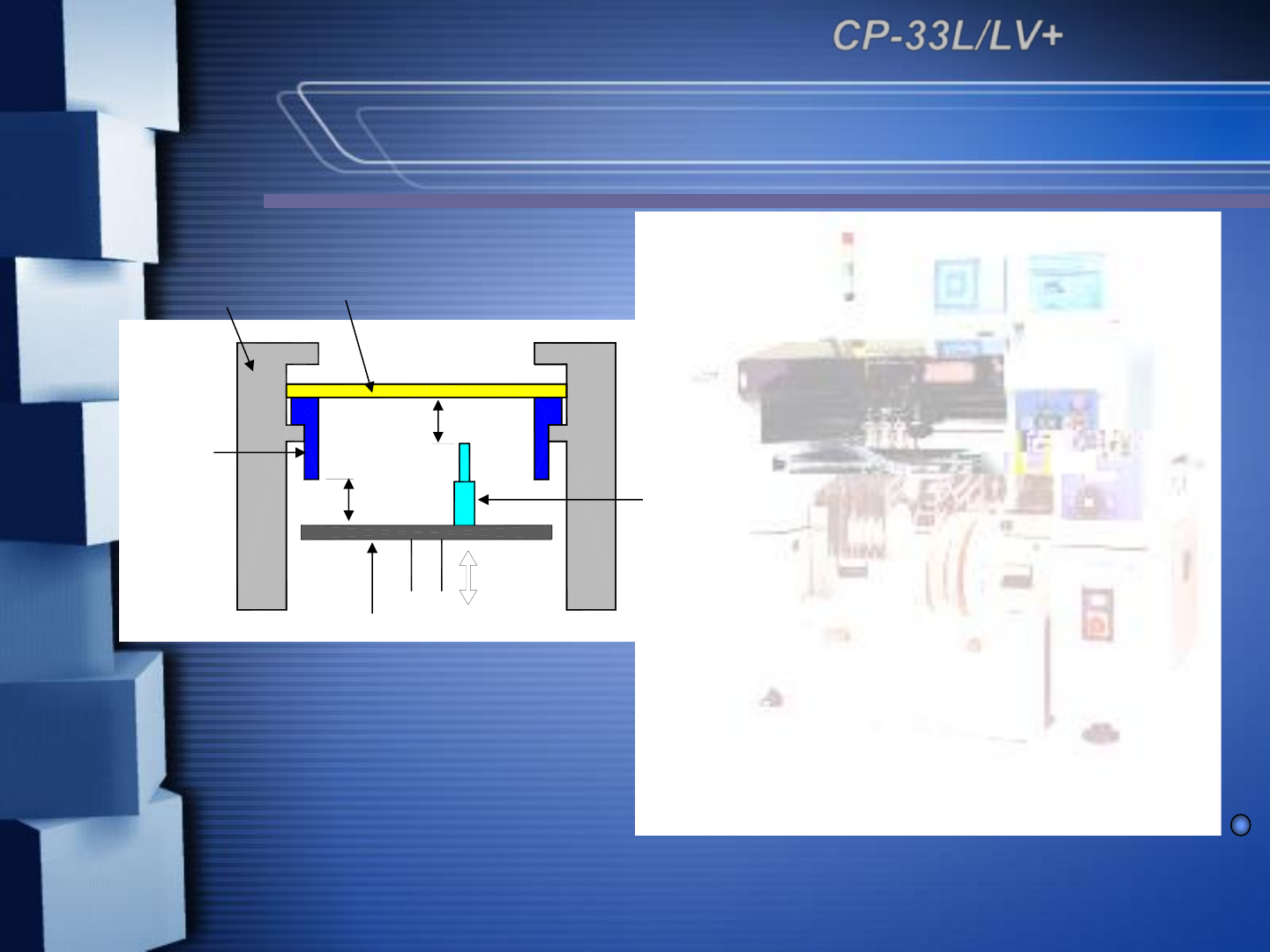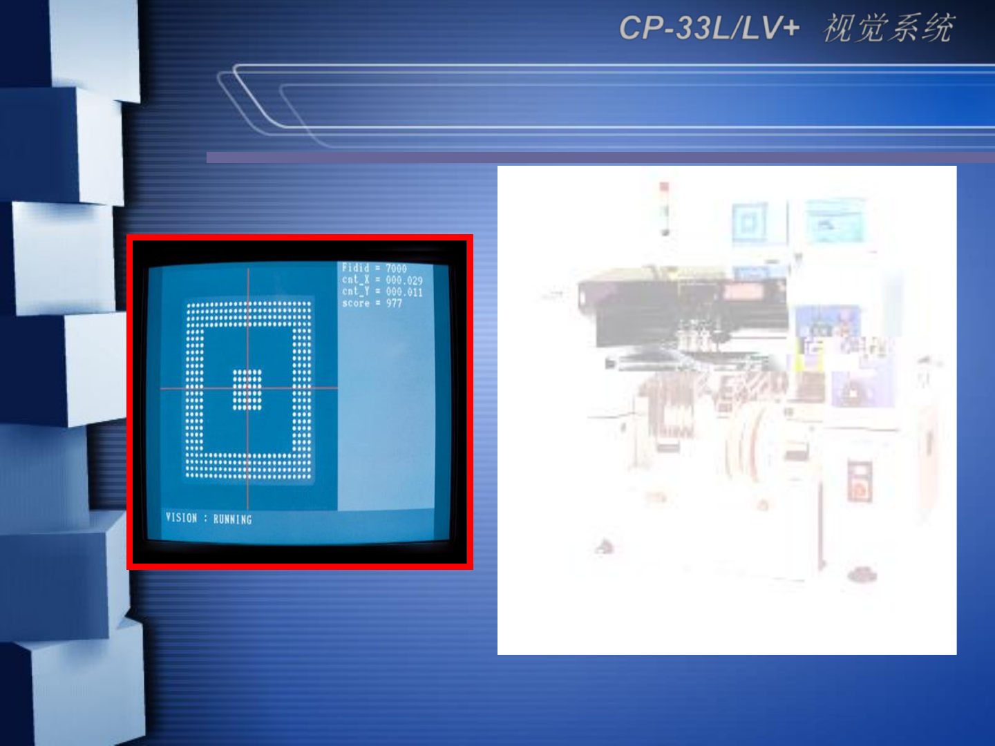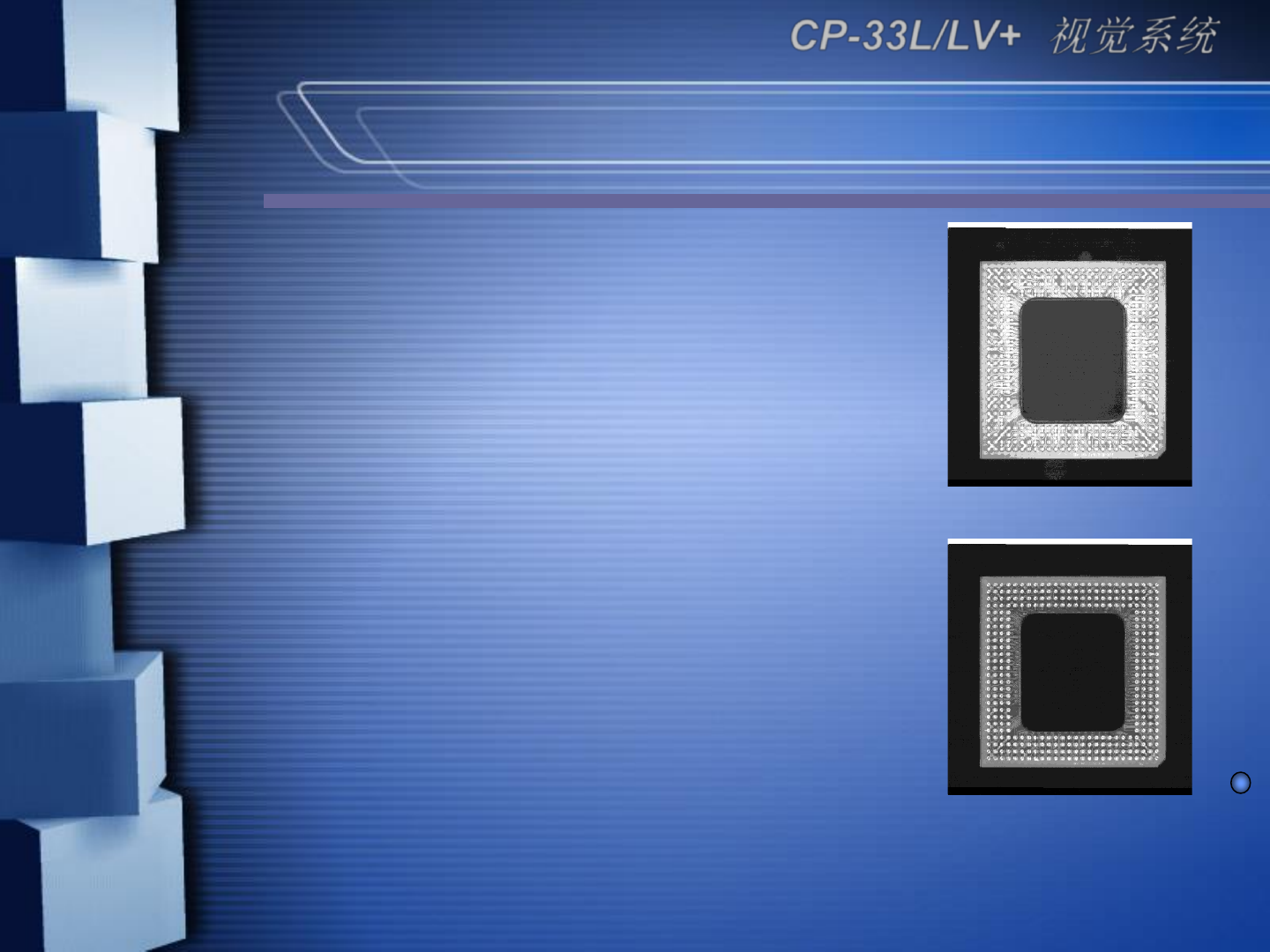 高精度的图像对中系统 ➢ - : 1.6sec/QFP ➢ - 256 - 0.3mm pitch QFP, BGA ➢ CP -33L/L V+