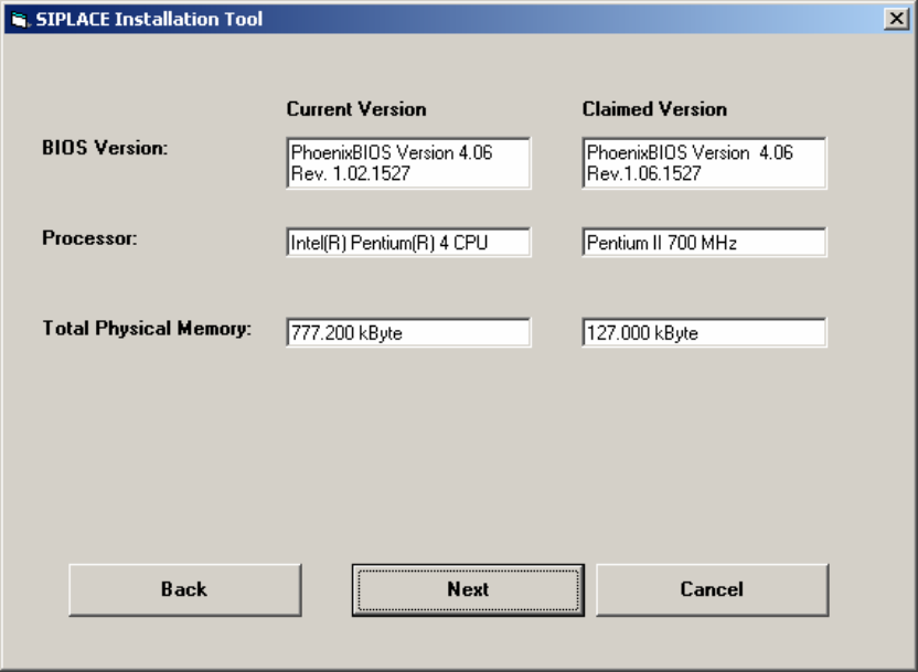With the information from the previous dialog, a hardware check will start. If there is something wrong, an