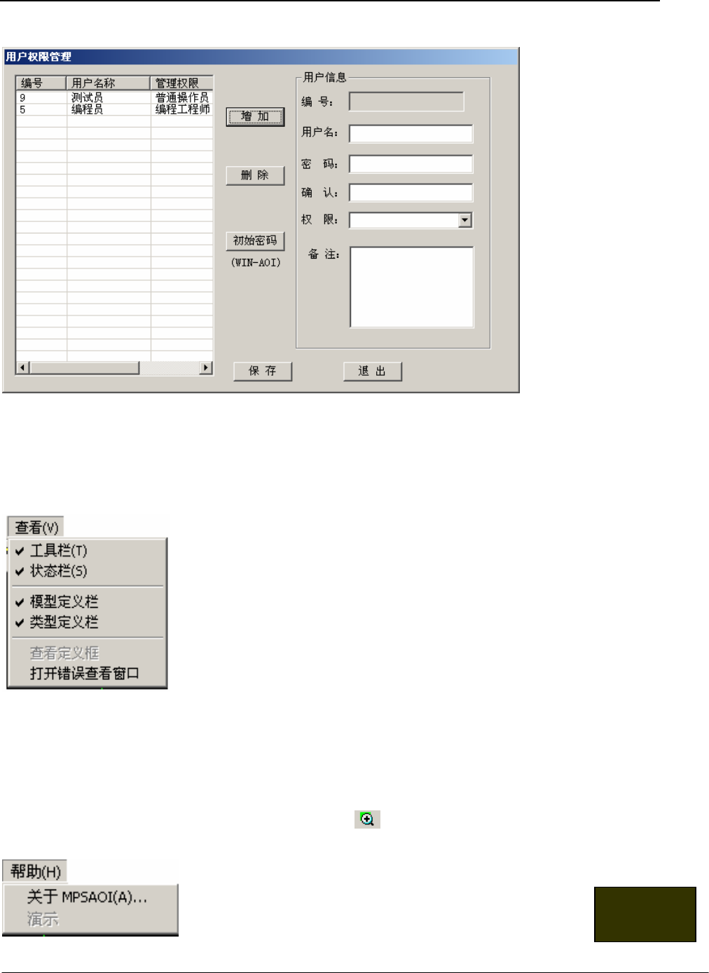 权限设置:用于更改各个用户的权限及口令。
