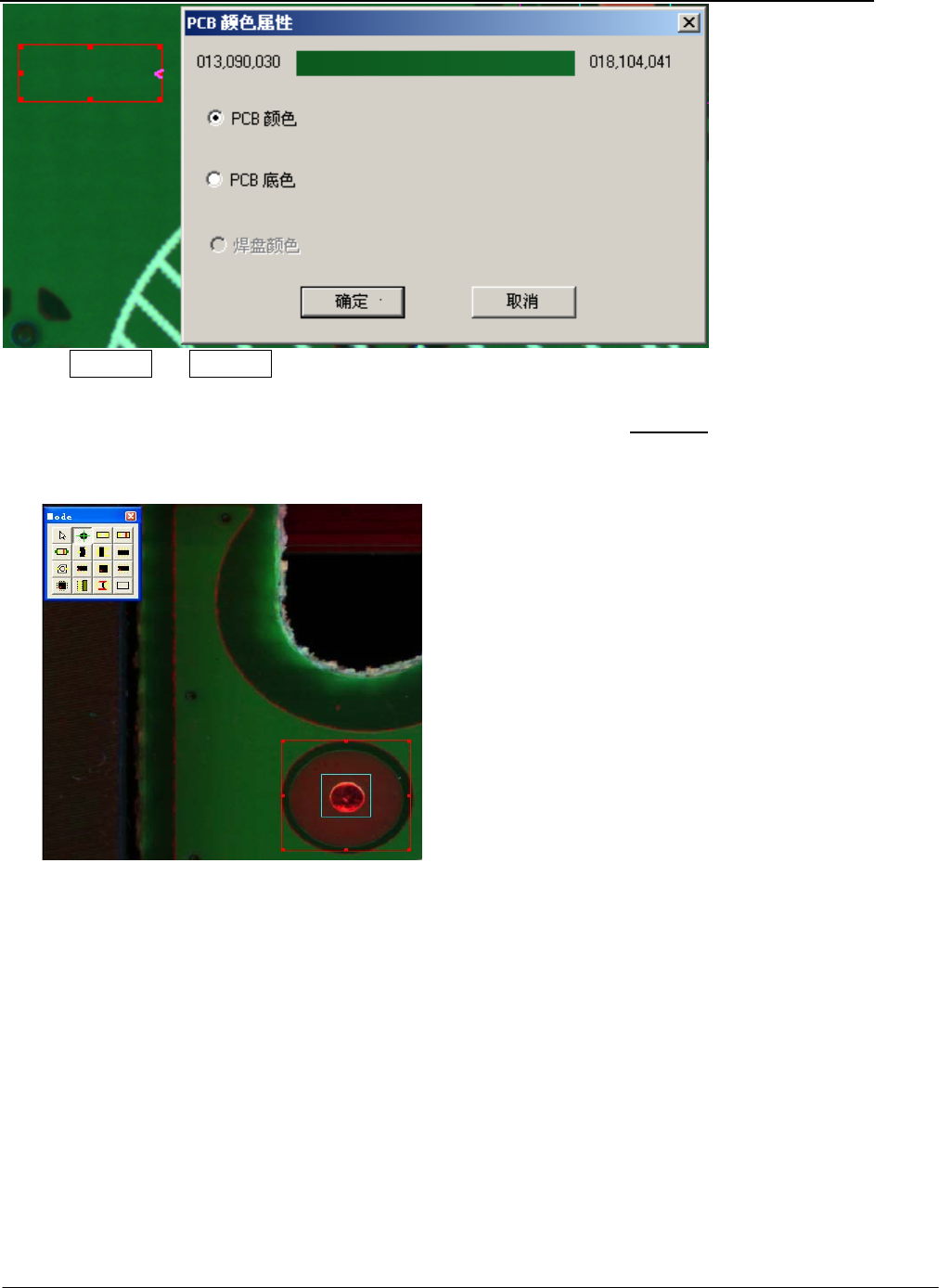 JT 深圳市劲拓自动化设备股份有限公司 (培训资料) 第 31 页 共 54 页 里面有 ”P C B 颜色 ” 和 ”P C B 底色 ” 两个选项,选择 PCB 颜色,点击 ” 确定 ” ,然后将异形定义 框选中一块元件下面的 PCB 颜色,设置成 PCB 底色。 设置完成后,将异形定义框删除。 ( 注: 一般 PCB 底色比 PCB 颜色要深一些, 设置 PCB 颜色是为了让软件在自动分析 时自动避开 PCB 的 颜色。 ) 4.…