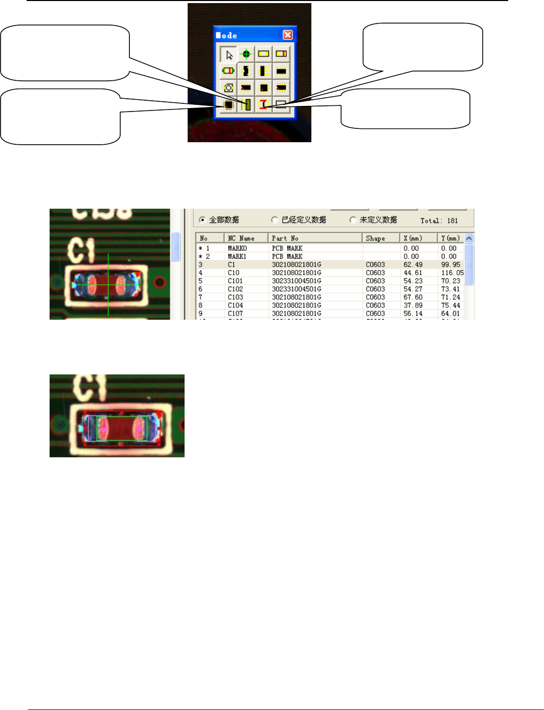 方法一:击模式框中的对应的元件类型设置按钮,再在十字处双击鼠标,对应于那个元件的检测框