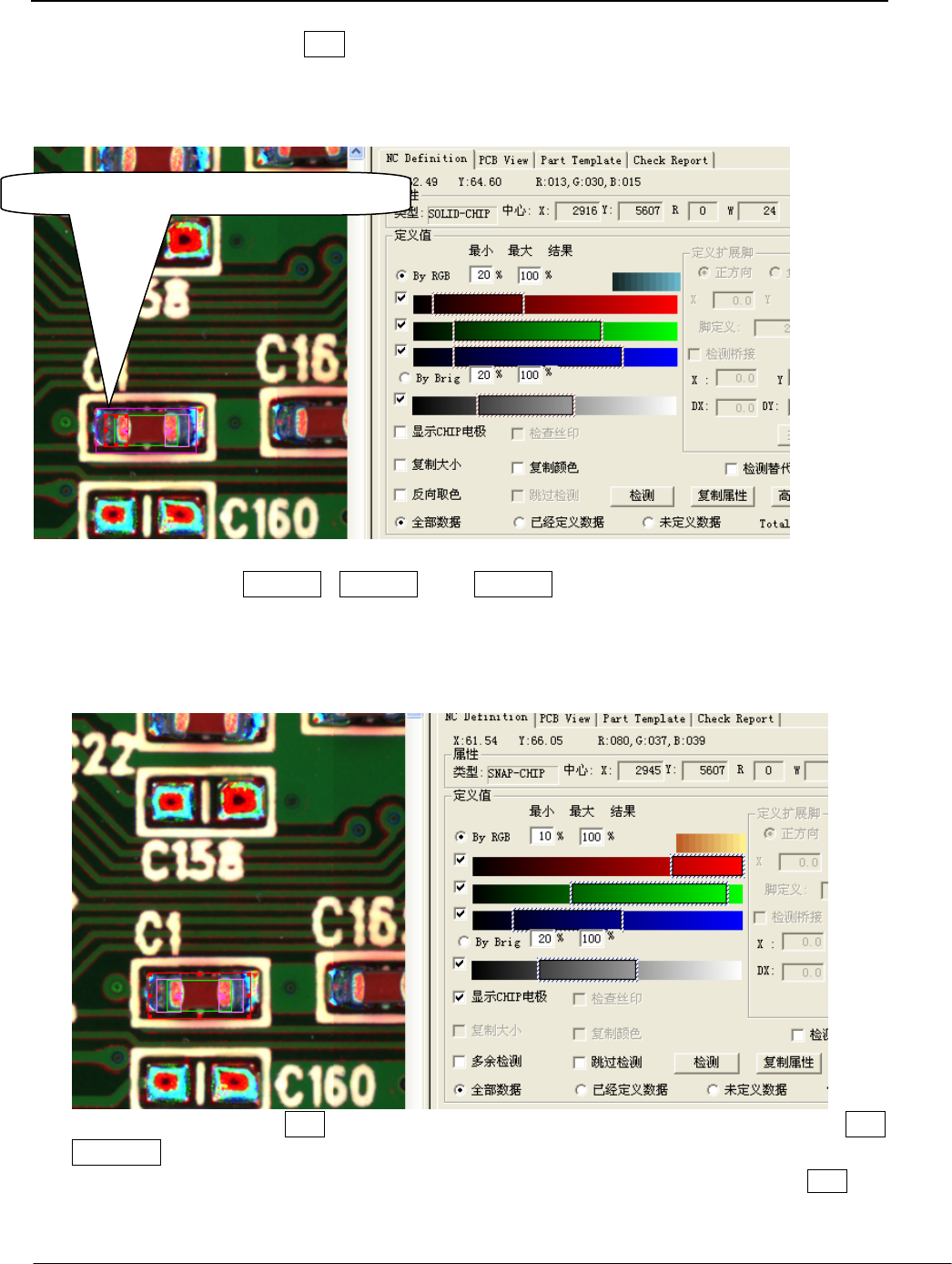 但检测框的位置还需要调整。注意:焊锡部分不能用鼠标右键来获得颜色属性定义,只能通过调整实