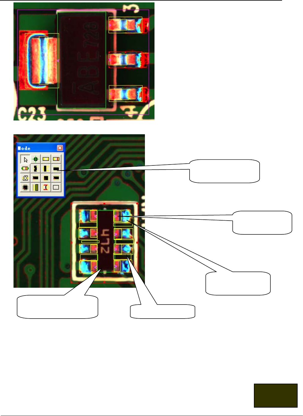 z 将焊接检测框移到 IC 的一支脚上,如下图,调整好一只脚的焊接的情况。
