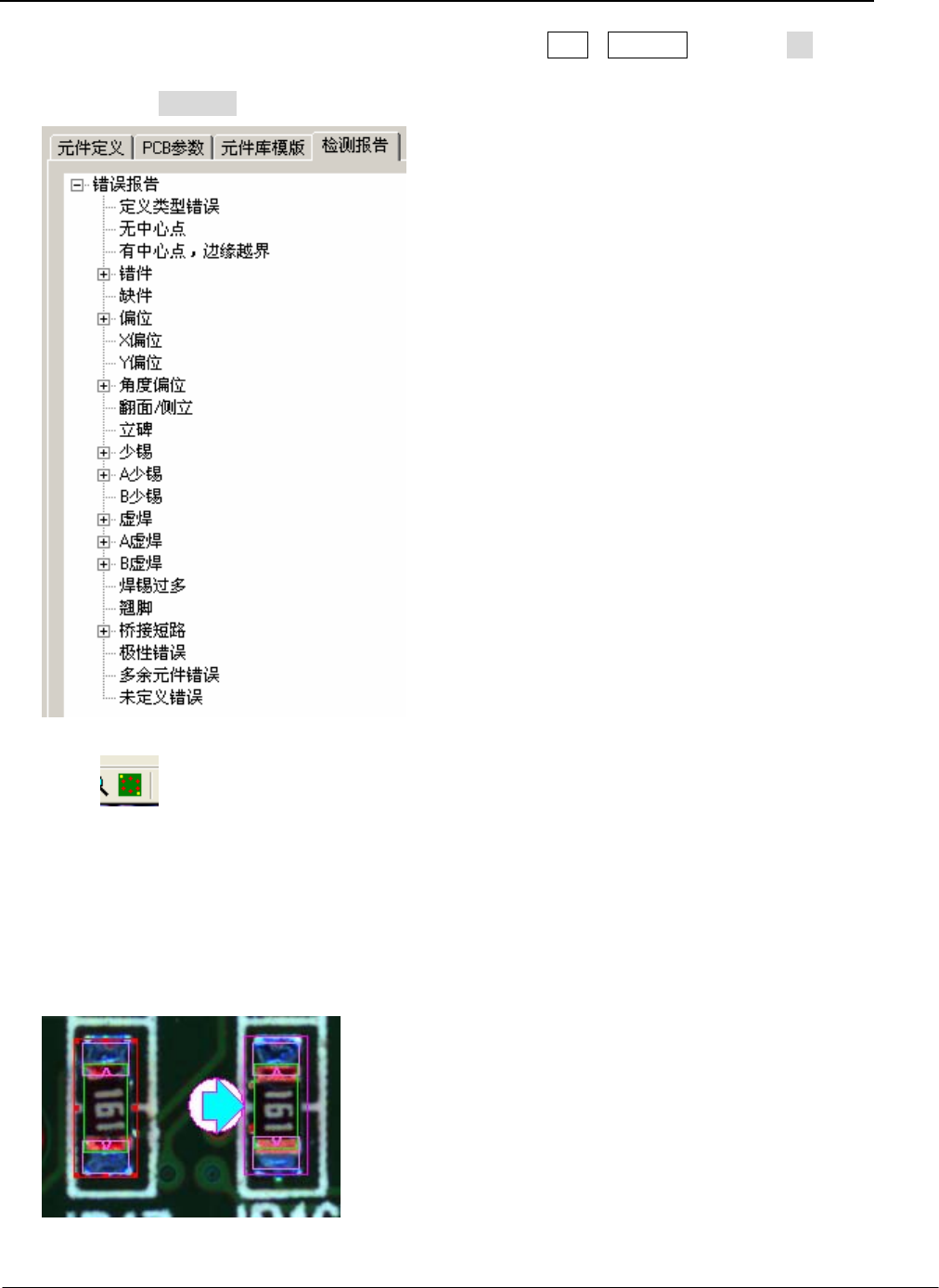 本体在焊盘两端稍微多出一点点,则系统在检测就可正常通过,但是本体如果太大,则焊盘检测区