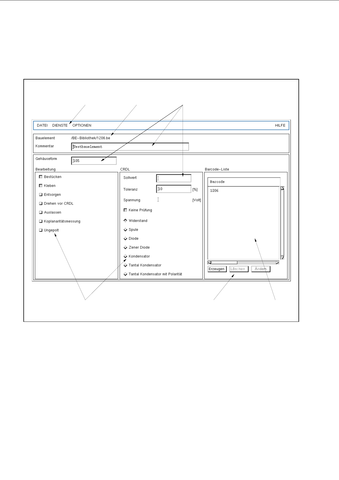entspricht (z.B., BE-Art "Diode"). Durch Auswahl der BE-Art wird dann die entsprechende CRDL-Prüfung für