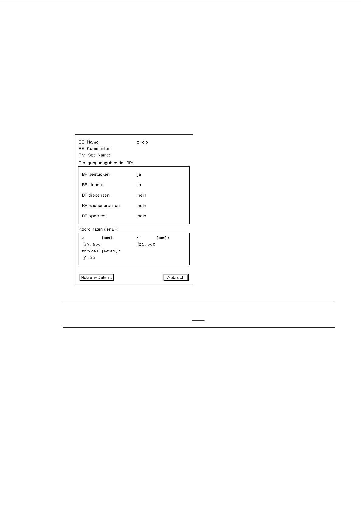 Das Fenster "BP-Information" wird mit den Daten der selektierten Bestückposition geöffnet.