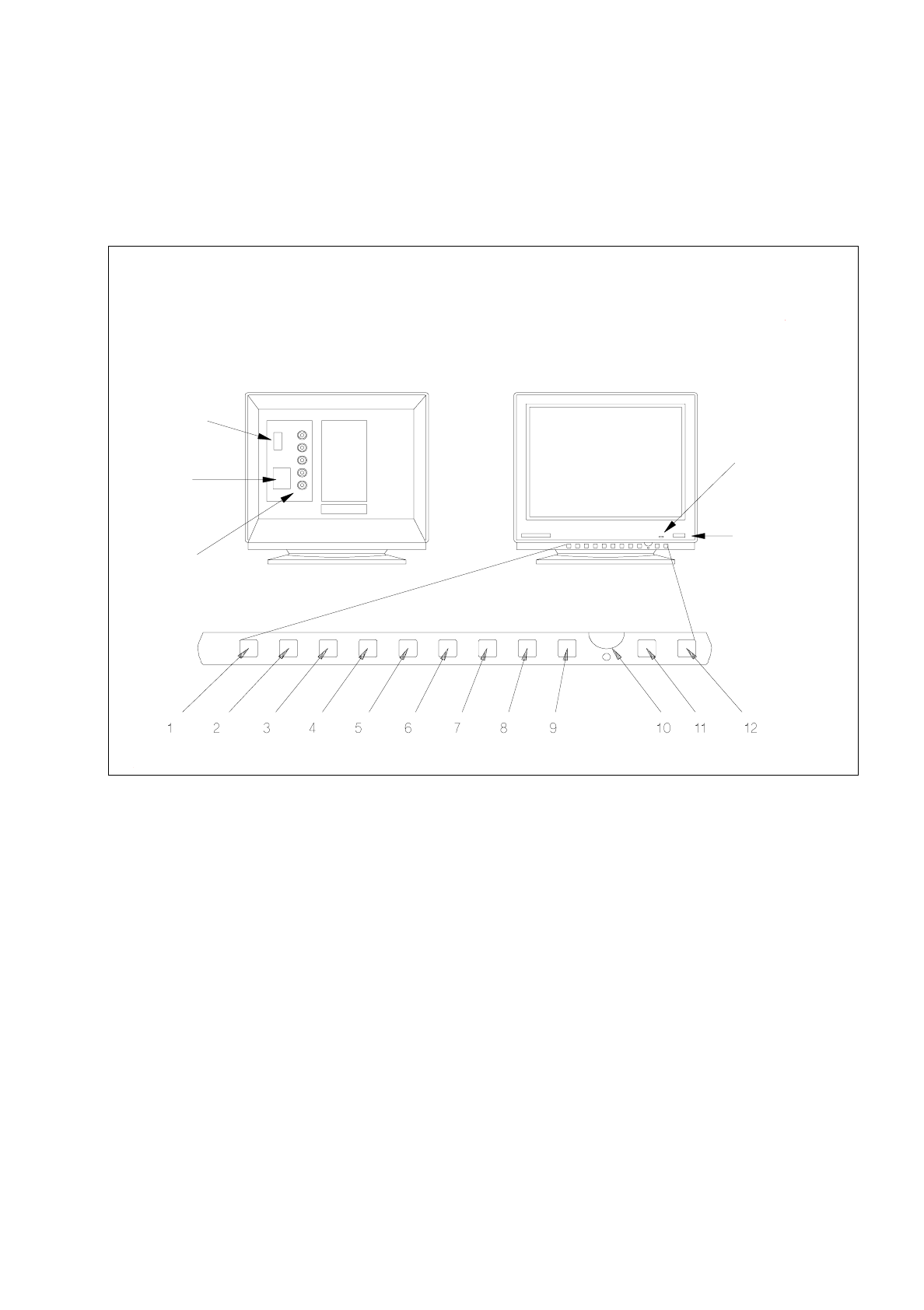 Abb. 1.2.3 Monitor - Anschlüsse, Bedienelemente, Einstellelemente