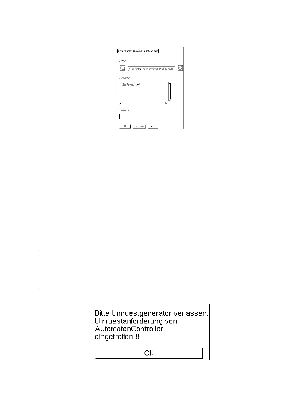 14 Steuerung / Steuerungsmodule Betriebsanleitung Linienrechner UNIX 14.5 Umrüstgenerator URG Software-Version 40 2.xx Ausgabe 06/9 6 14 - 48 ● Dialogbox mit Ok bestä tigen. ● URG über das Menü "DA TEI" mit End…