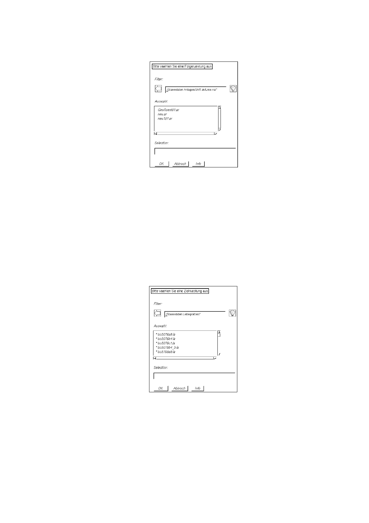 Für die Auswahl der Zielrüstung das Verzeichnis "*Stammdaten:Leiterplatten" mit Doppelklick öff-