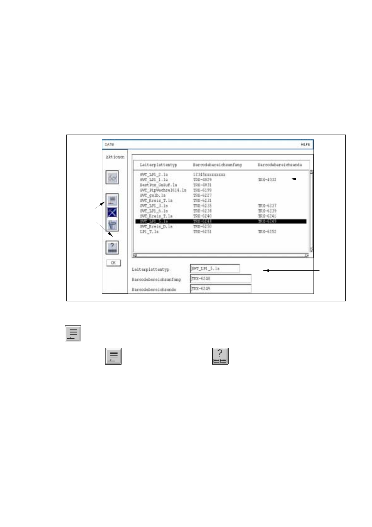 Hier können den Leiterplattentypen bestimmte Barcodebereiche (Anfangsbarcode --> Ende-