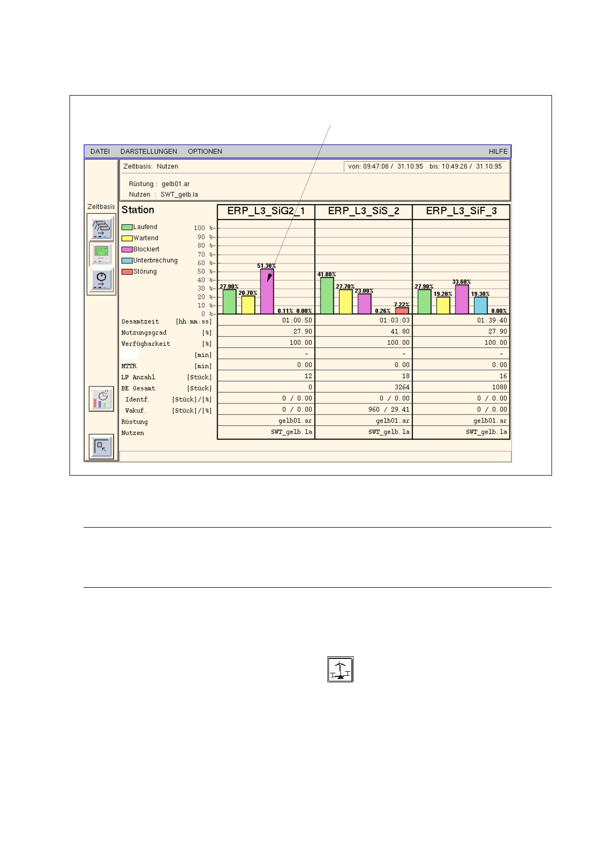 In der Auswerteform "Verfügbarkeit" die Ikone im Diagramm der gewünschten Station