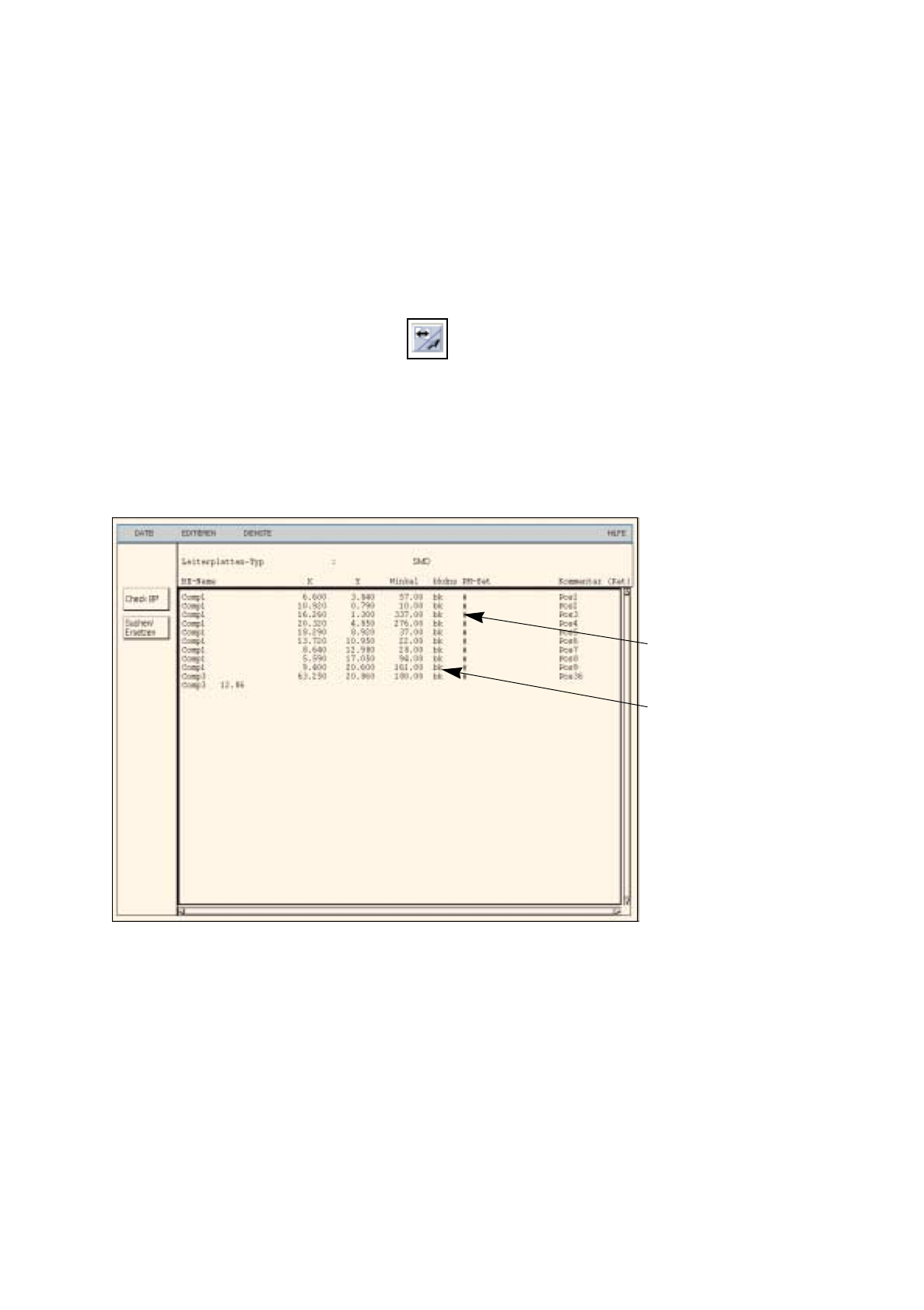 Abb. 17.2.3 Bestückpositions-Editor für Leiterplatte1