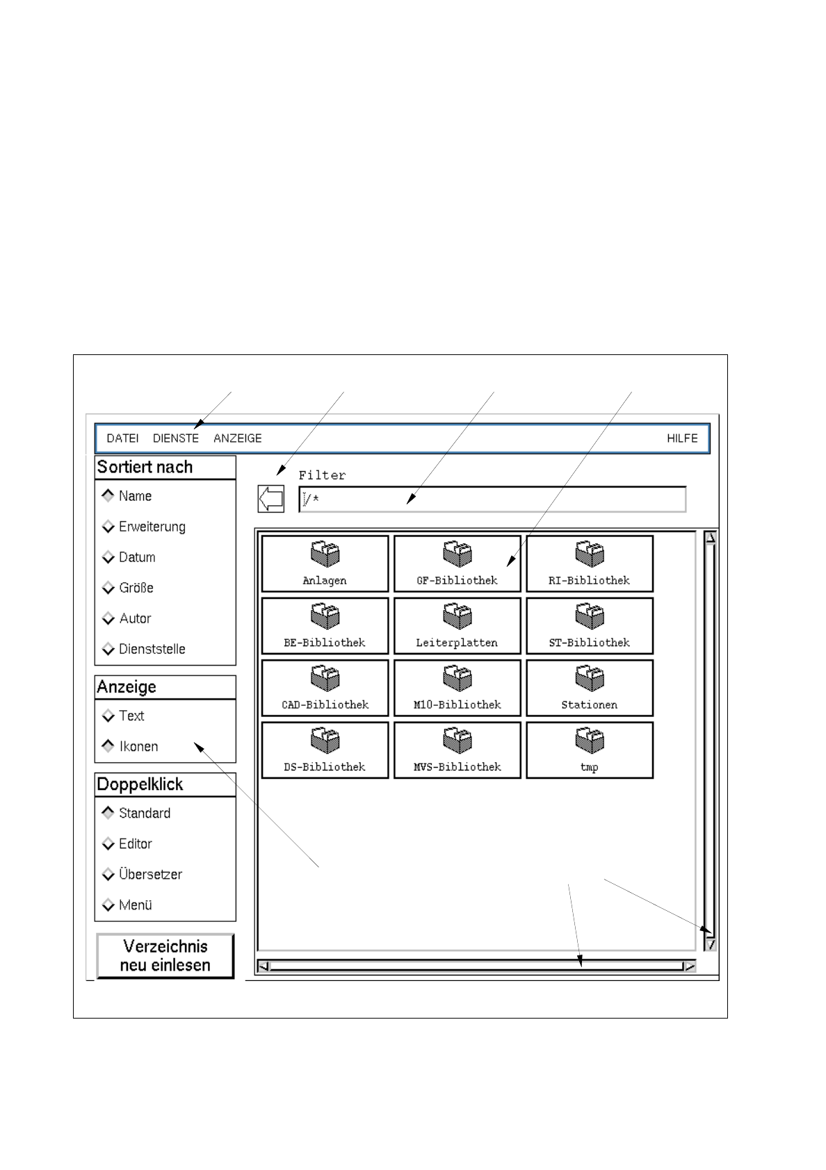 Menüzeile Pfeilbutton Editierfeld Anzeigebereich