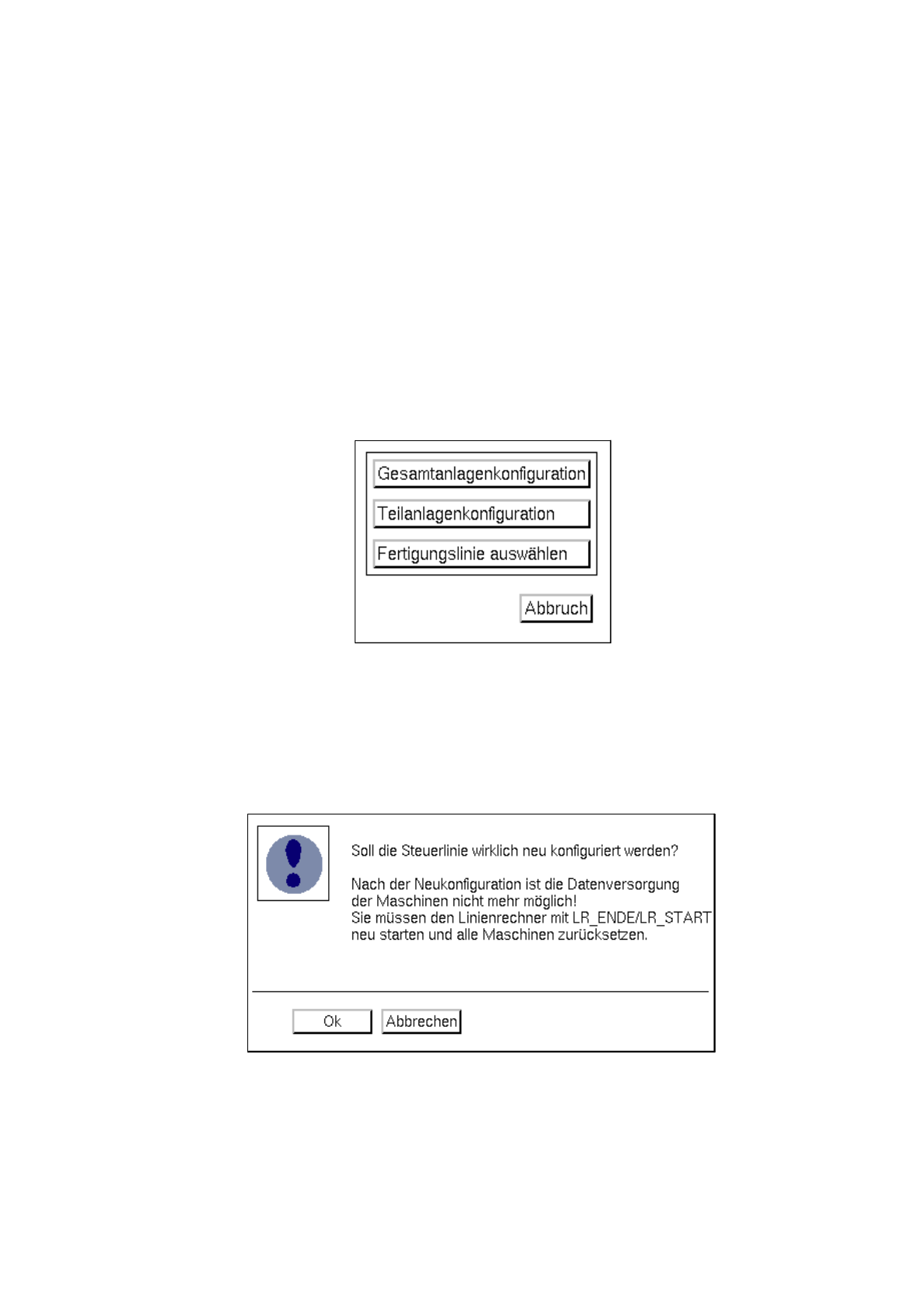 Es kann immer nur jeweils eine Gesamtanlage vom Linienrechner gesteuert werden. Diese Gesamtanlage wird