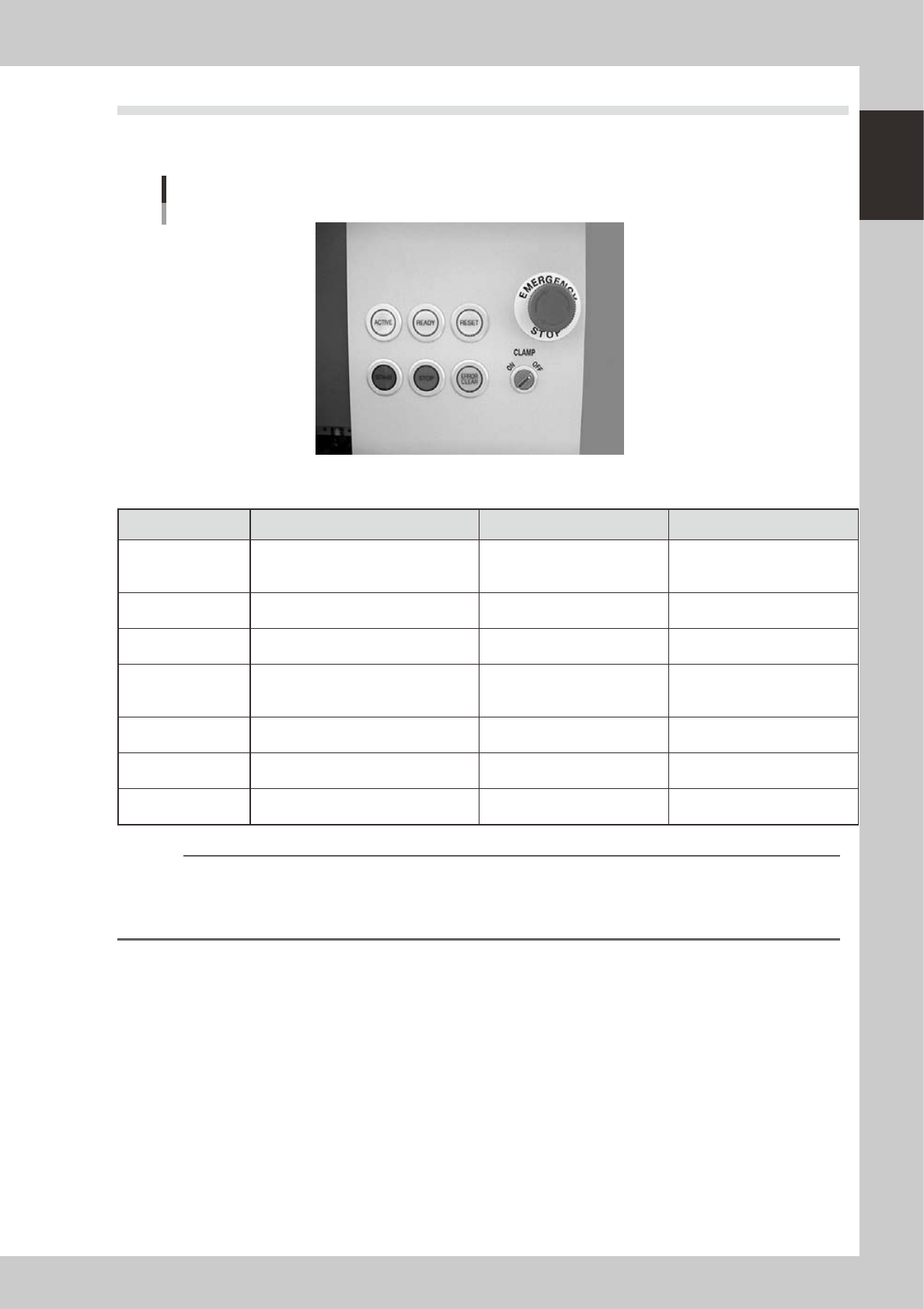 means that the [READY], [START], [ERROR CLEAR] and [RESET] buttons are enabled only when the [ACTIVE] key on the