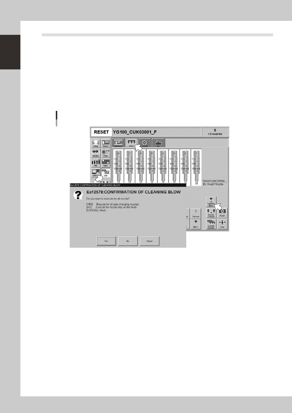 A confirmation dialog box appears asking how you want to perform nozzle shaft blow, so press [Yes] or
