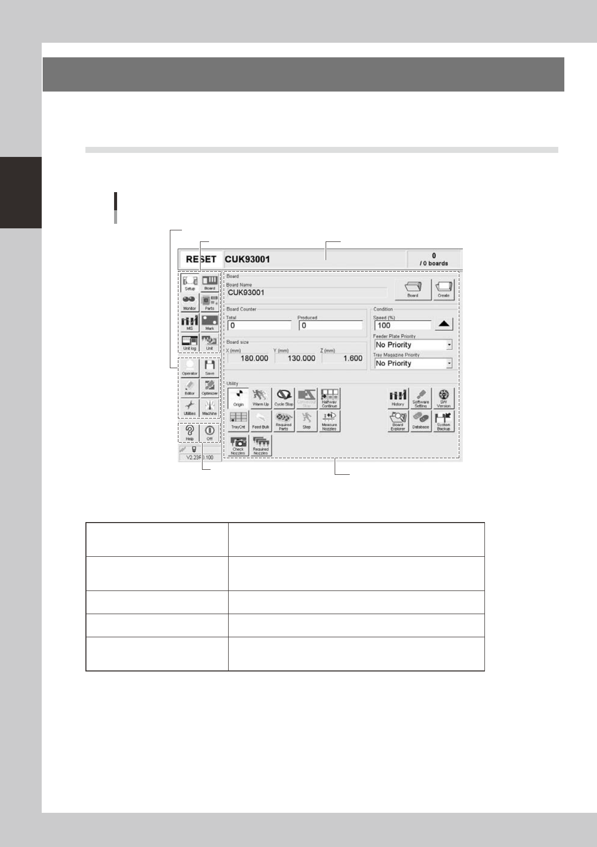 The basic configuration and operation methods of the software screens are explained in this section. Please