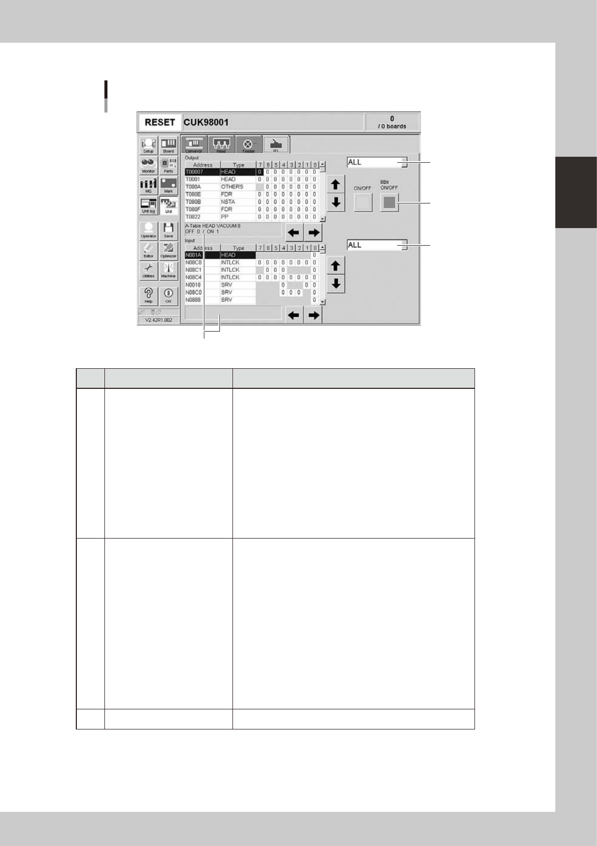 1 Vacuum Turns the vacuum of each head on or off.