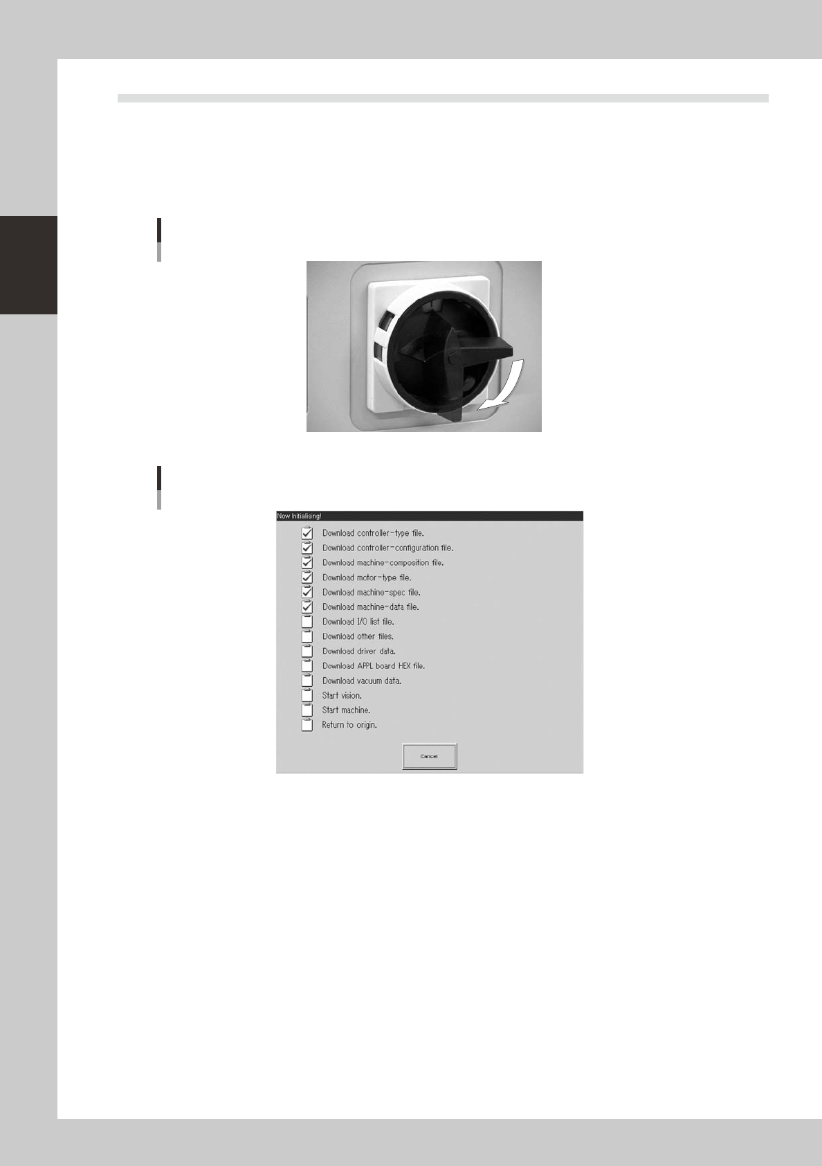 system has started, the Initialization screen appears and the program necessary for machine operation