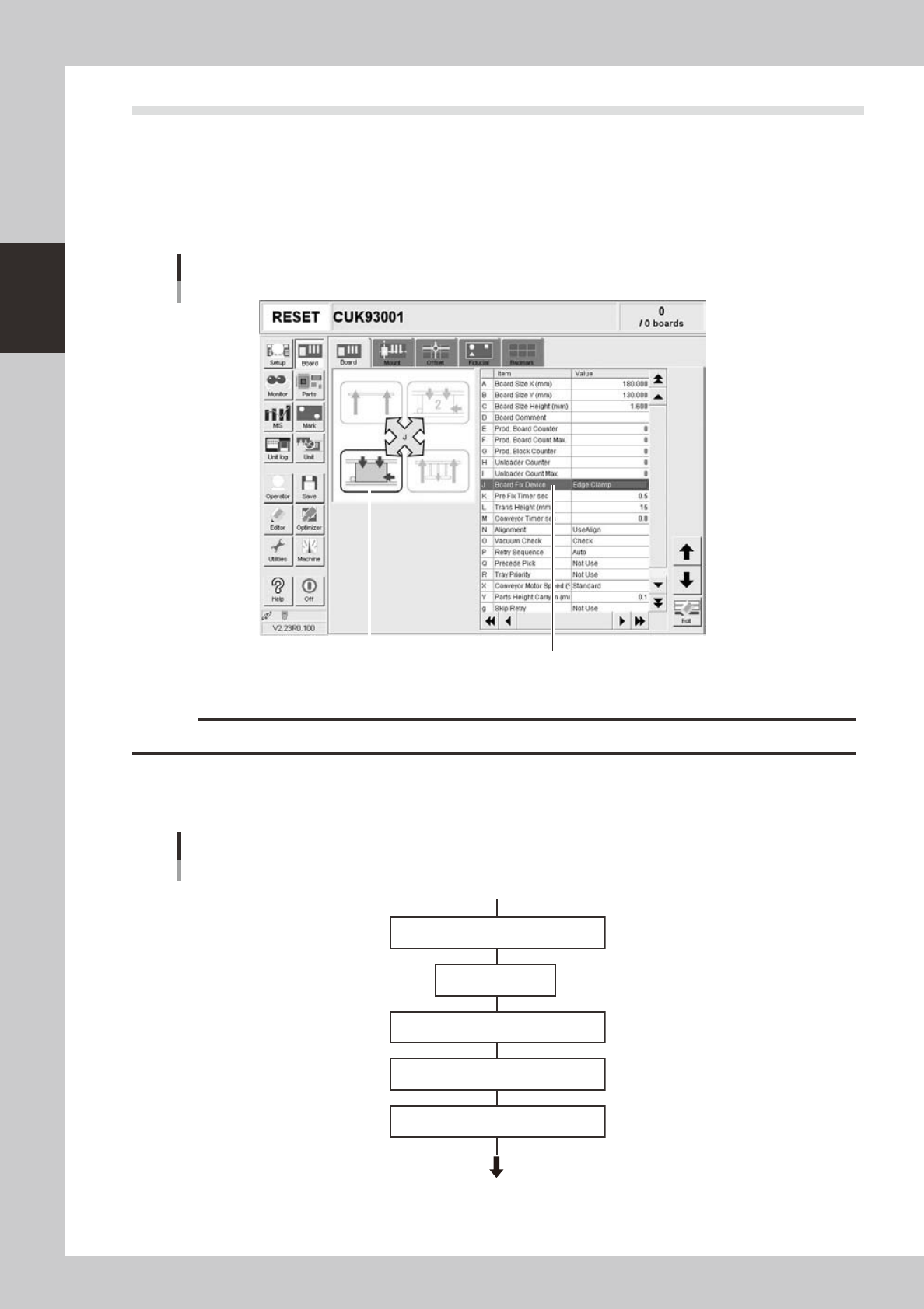 Select "Edge Clamp" for the board clamping method. This method clamps a board by pushing up its edges against the