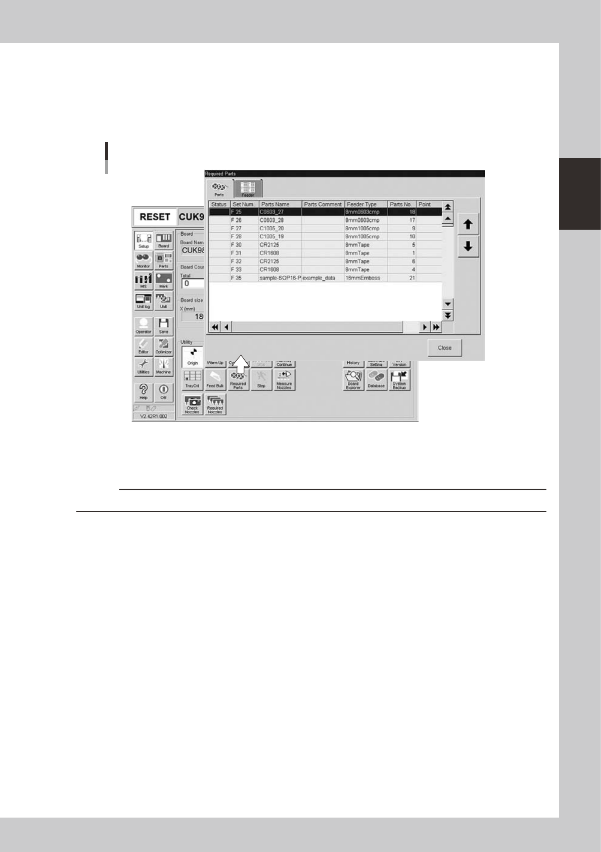 On the [Setup] screen, press the [Required Parts] button to open the "Required Parts" screen and check