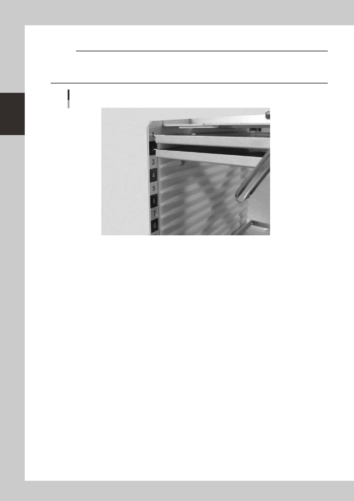 • Insert the pallet into the shelf that was set in the "Pallet No. Start" and "Pallet No. End" parameters in the [Parts] - [Tray]