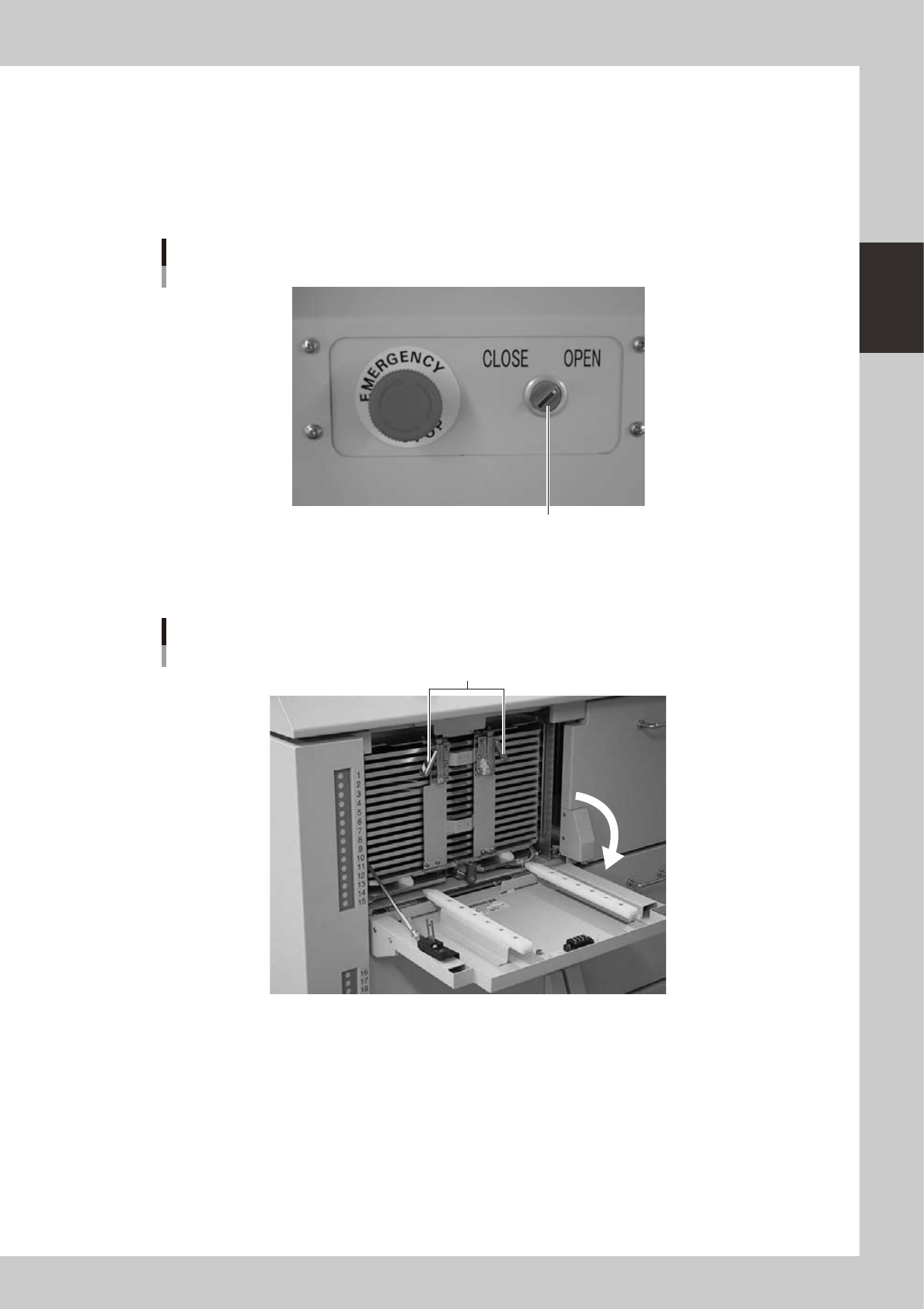 Set the door switch for the magazine you want to replace to "OPEN".