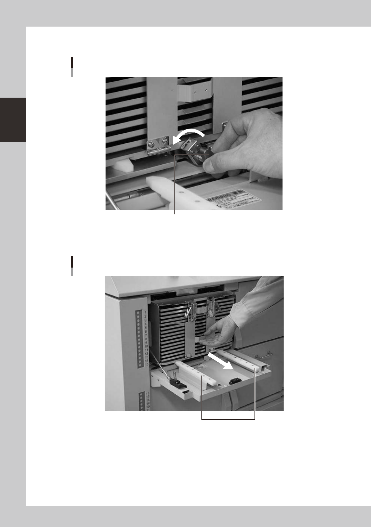 • Labels with black and silver numbers are affixed to both sides of the magazine to show the shelf number and