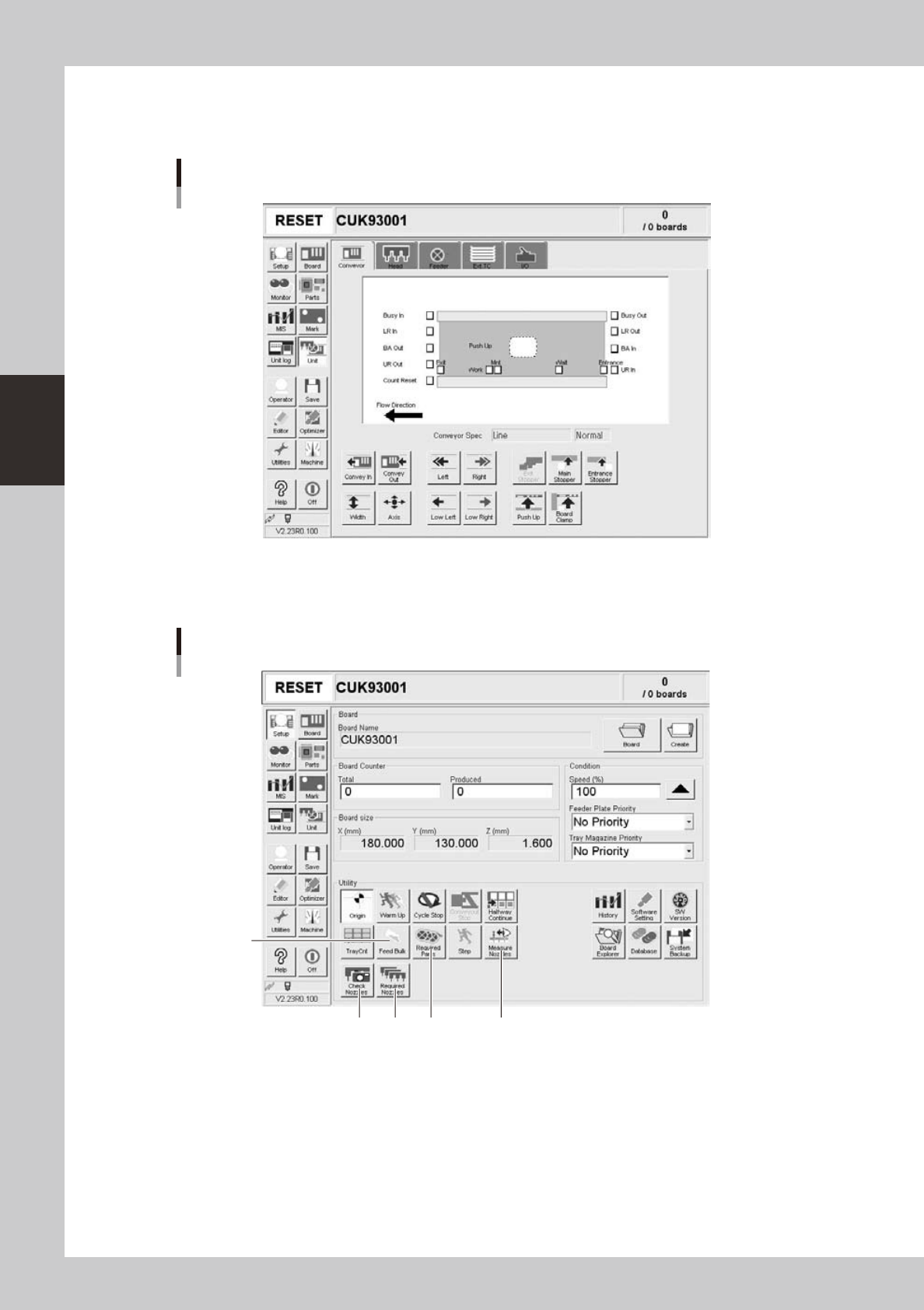 the board. For further details, refer to "3.4 Adjusting the convey unit setup" in Chapter 2.