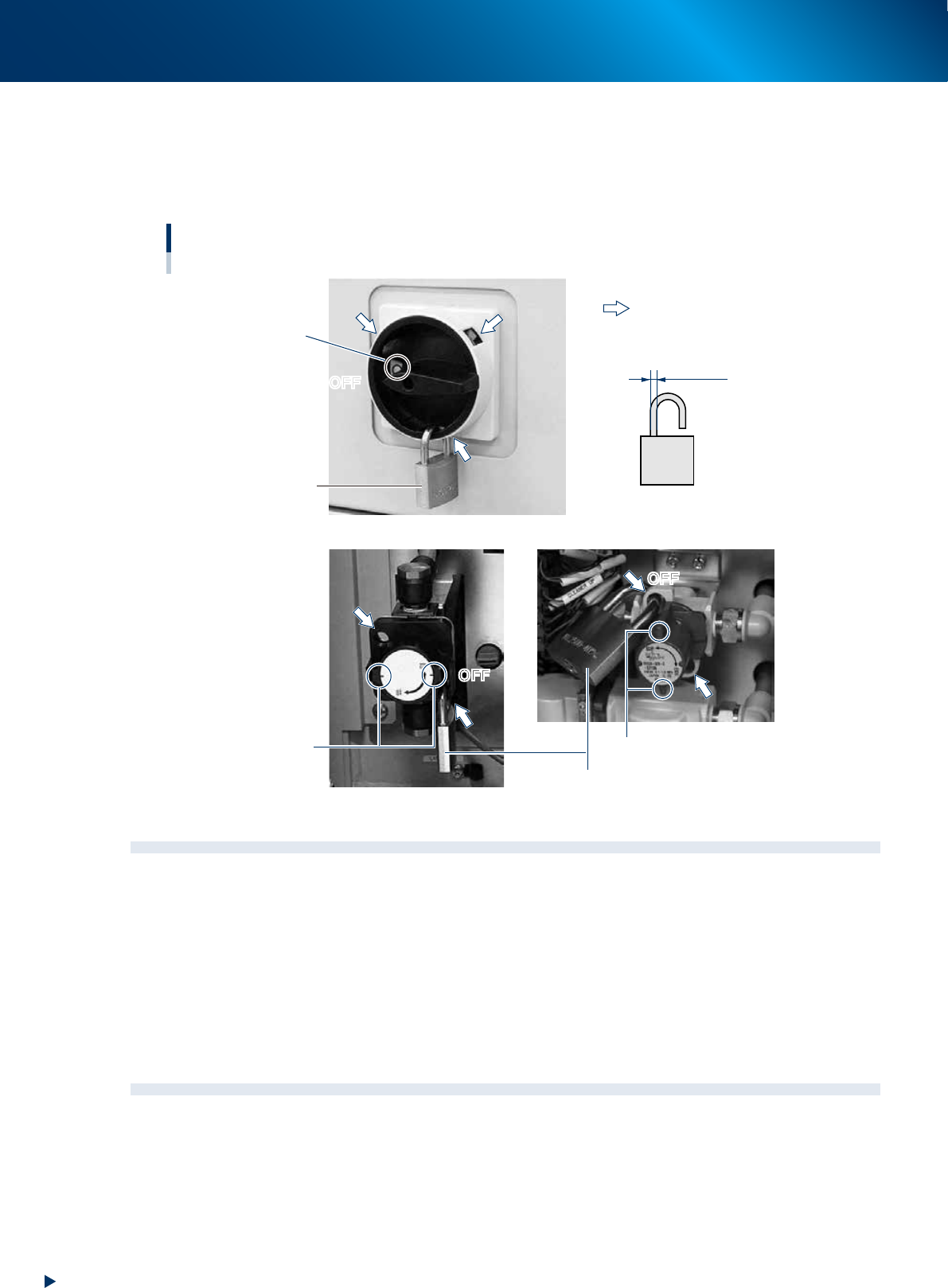 进行维修保养作业需要切断电源、气源时,请参照下图用挂锁锁定电源主控开关、供气 / 排气开关之后再进行。