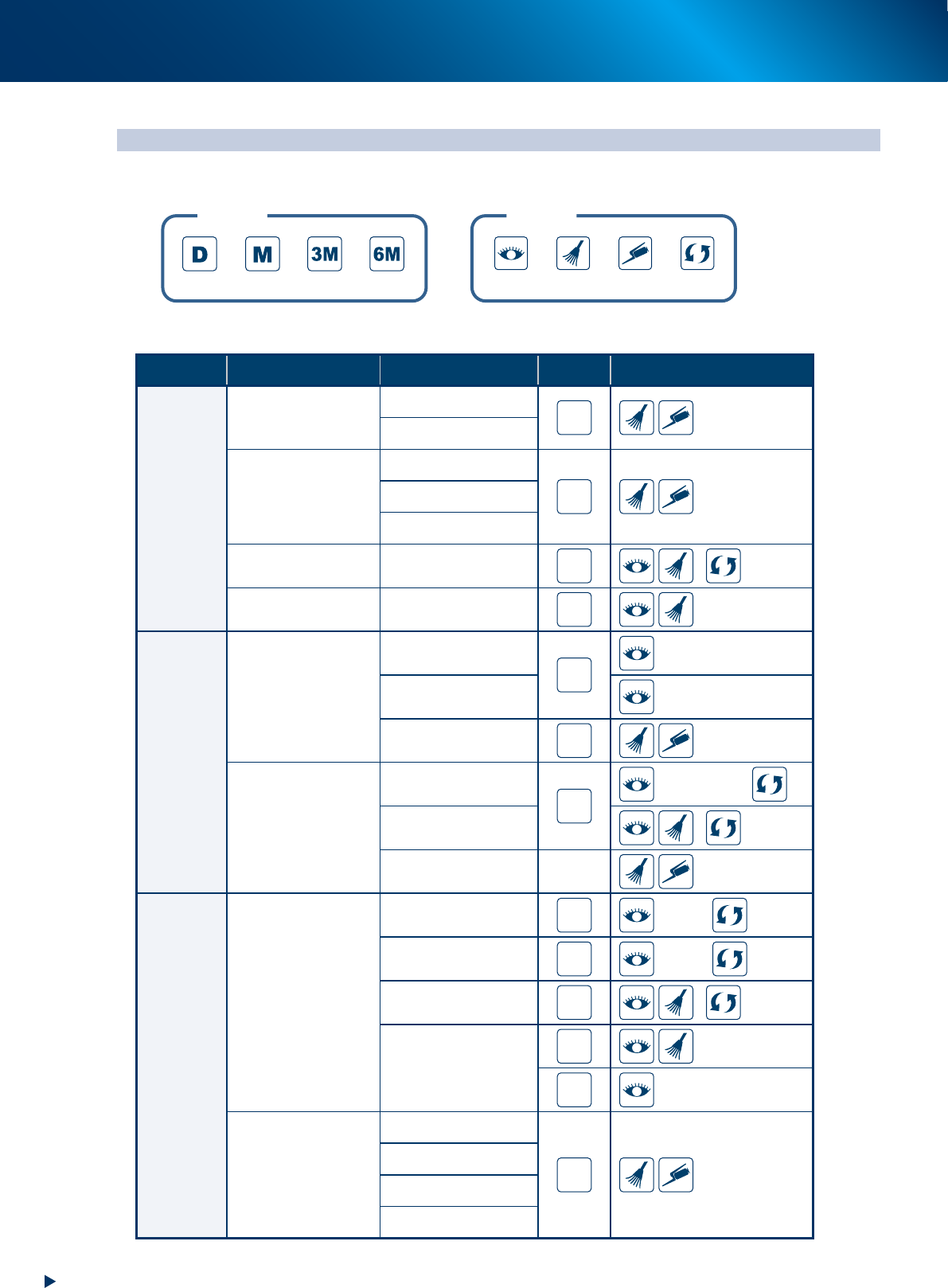 维护保养作业的实施频率与作业内容,以下图所示图例进行标示。