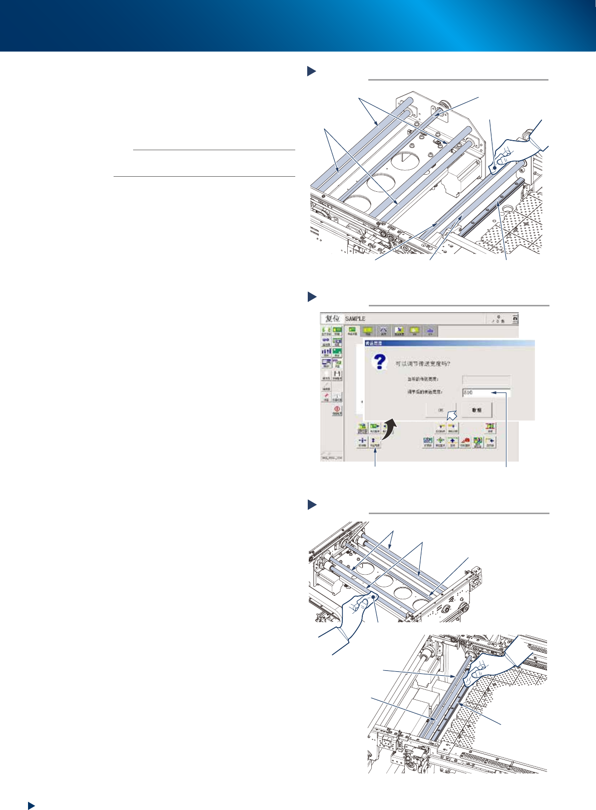 下面,介绍对 YSP10 印刷机的自动调节传送宽度的轴 (W1 轴、W2 轴、W3 轴 ) 进行清洁与加油的方法。