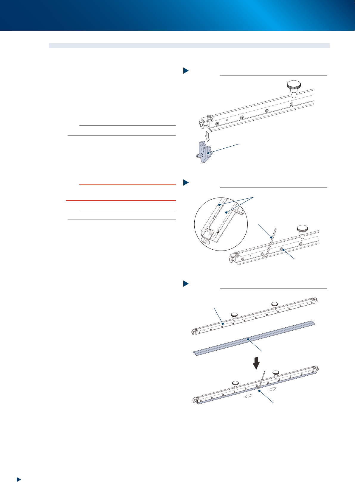 1. 将新的刮取部夹入刀片架之间,用内六角扳